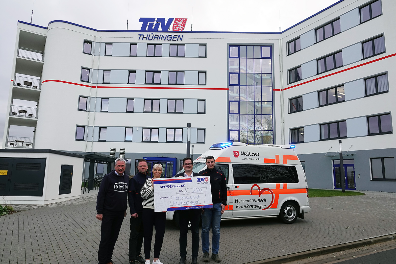 TÜV Thüringen spendet zu Weihnachten 2.500 Euro an den Herzenswunsch-Krankenwagen der Malteser