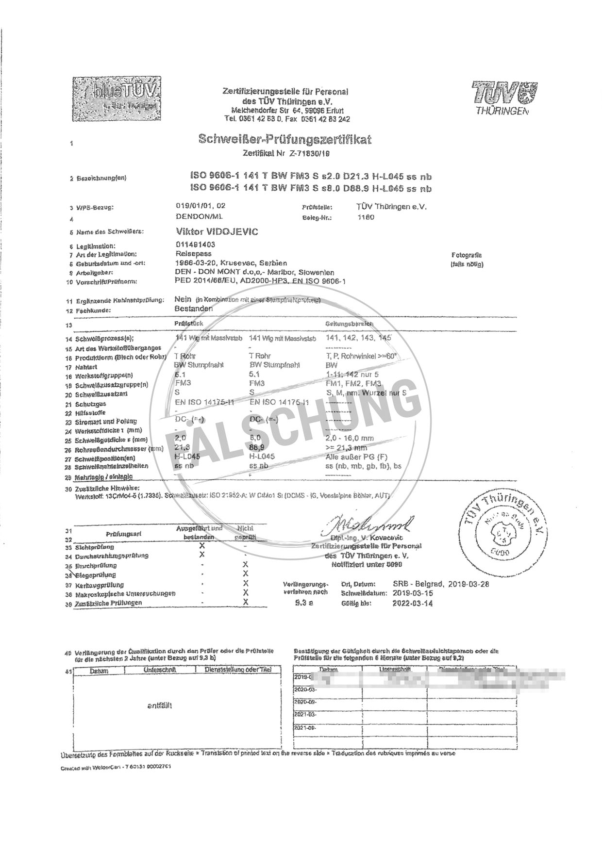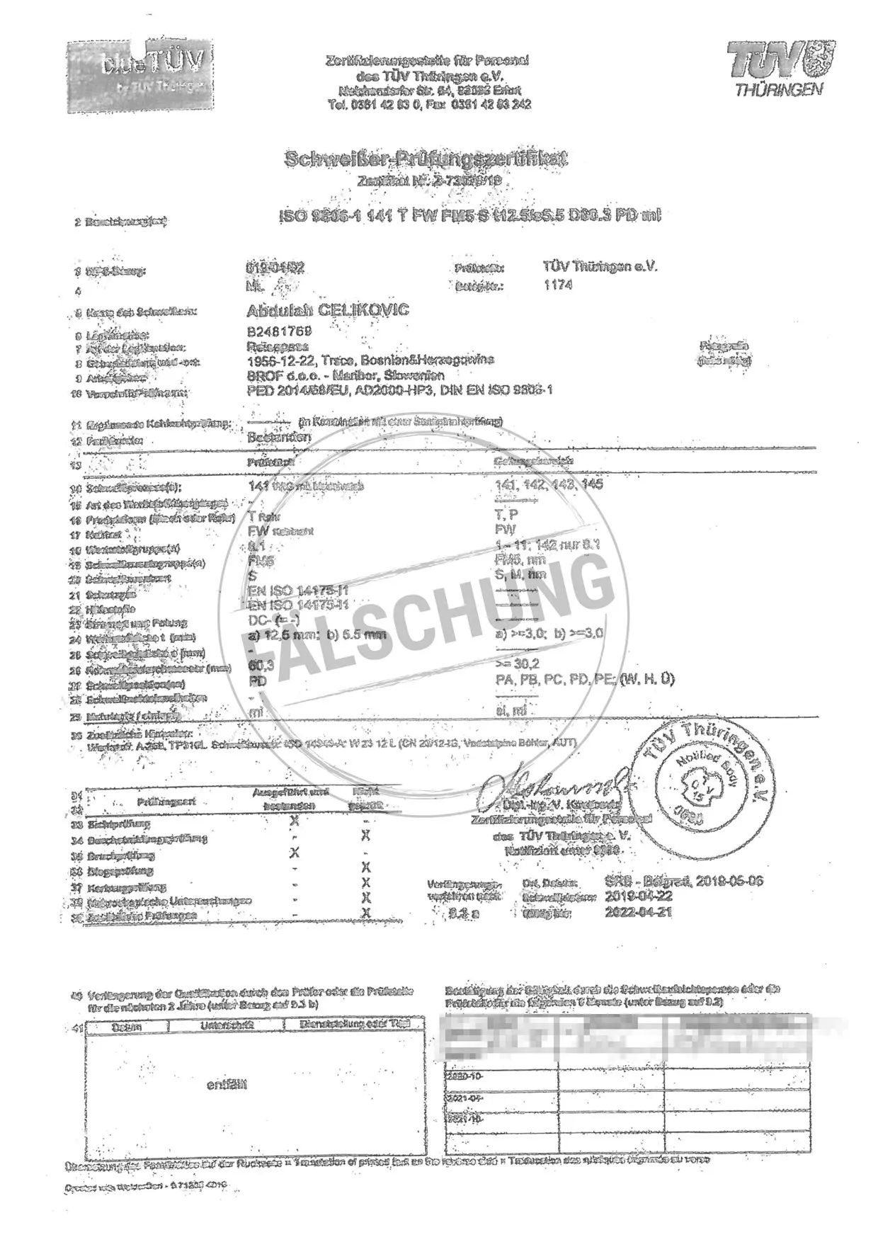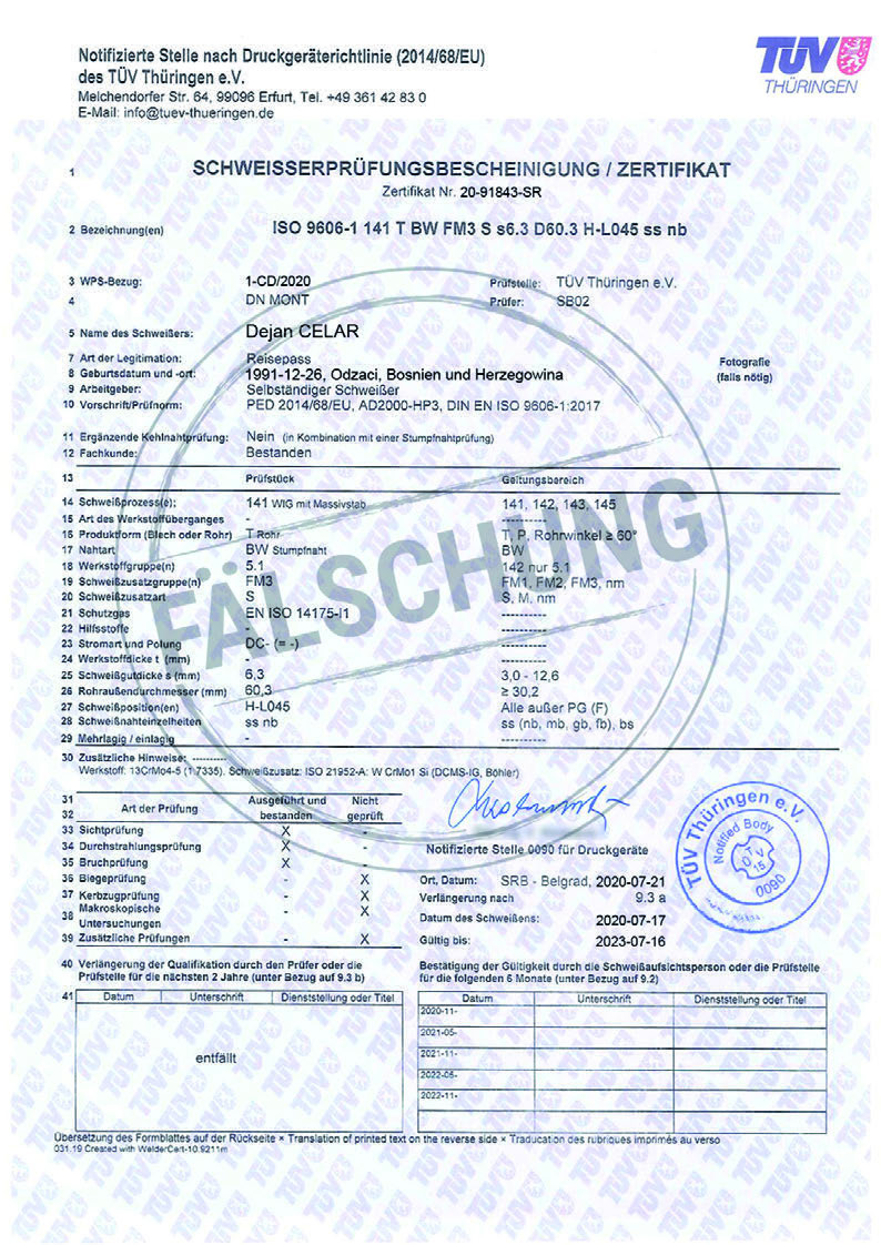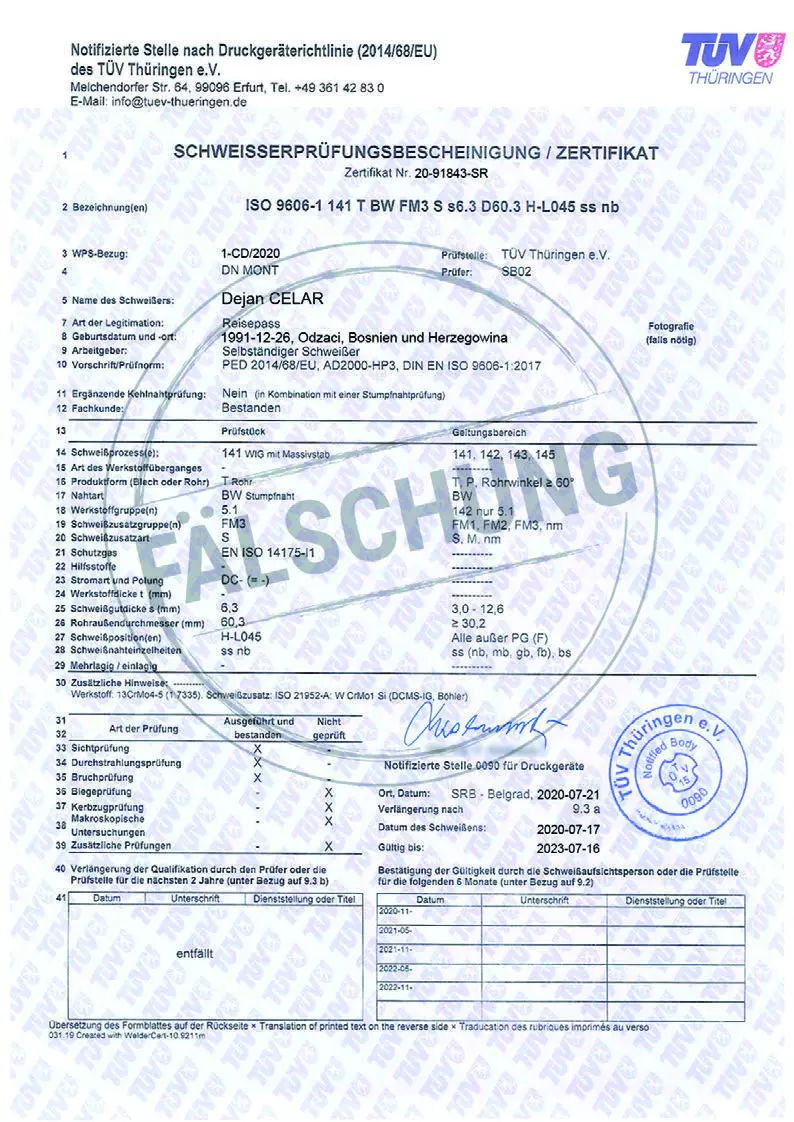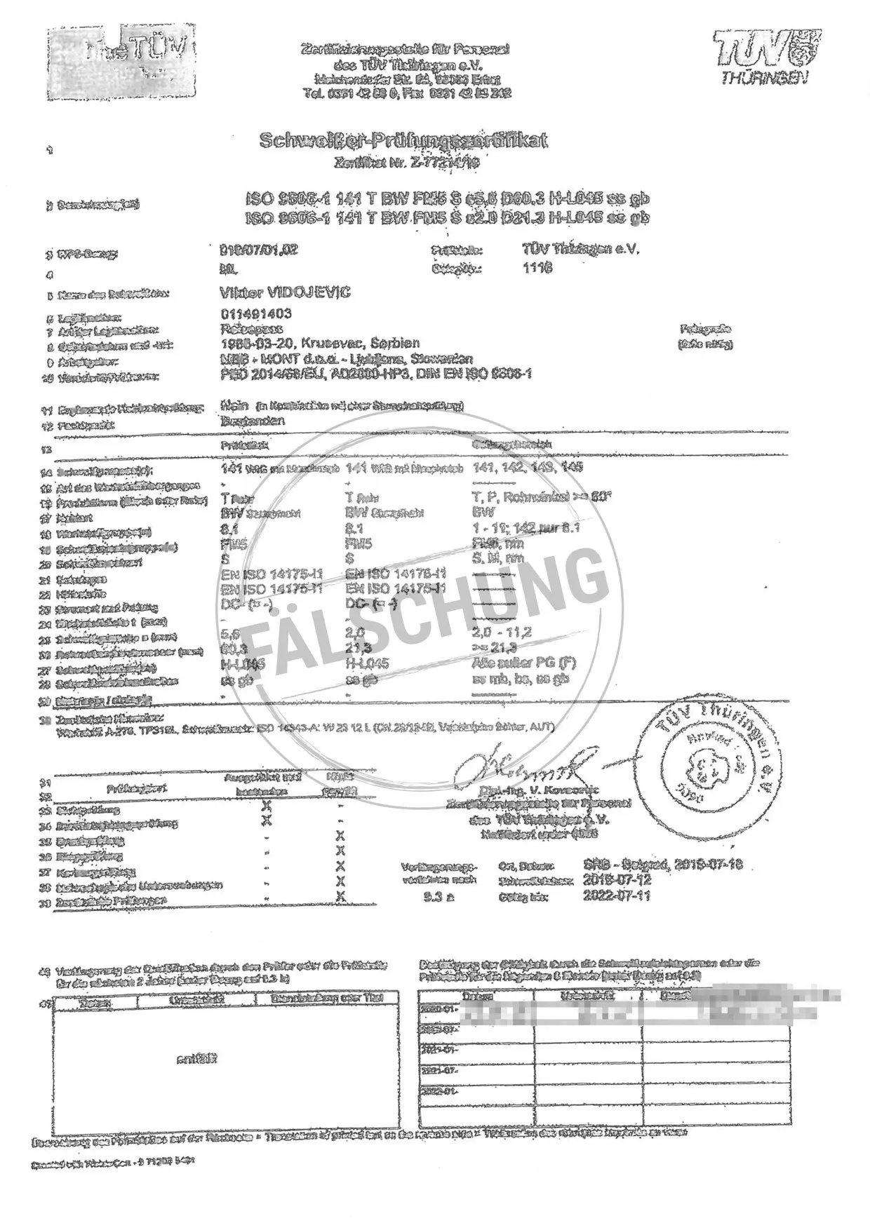 Следующие подделанные знаки контроля и сертификаты TÜV Thüringen, которые ни коим образом нами лично не распространялись, известны нам:
