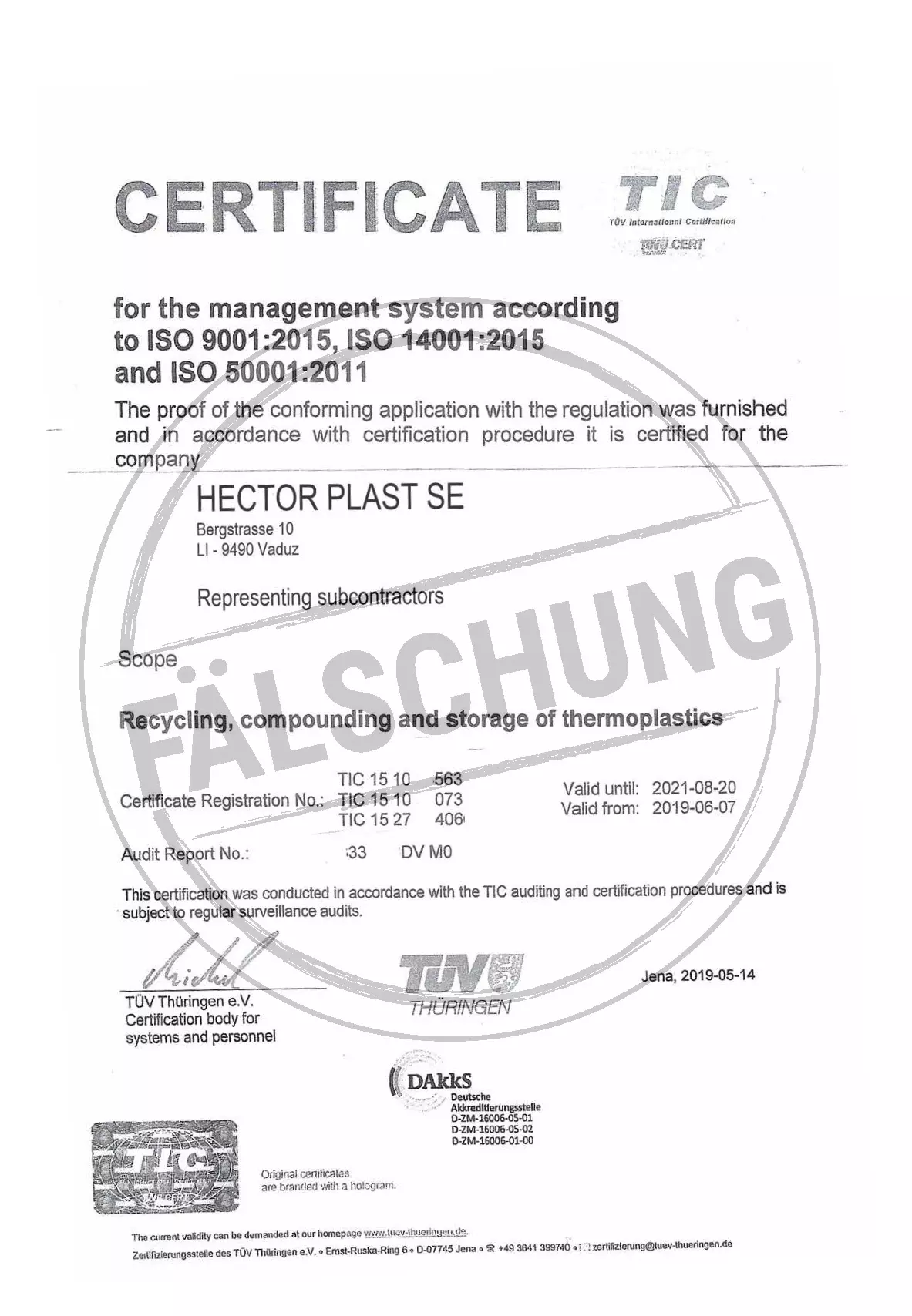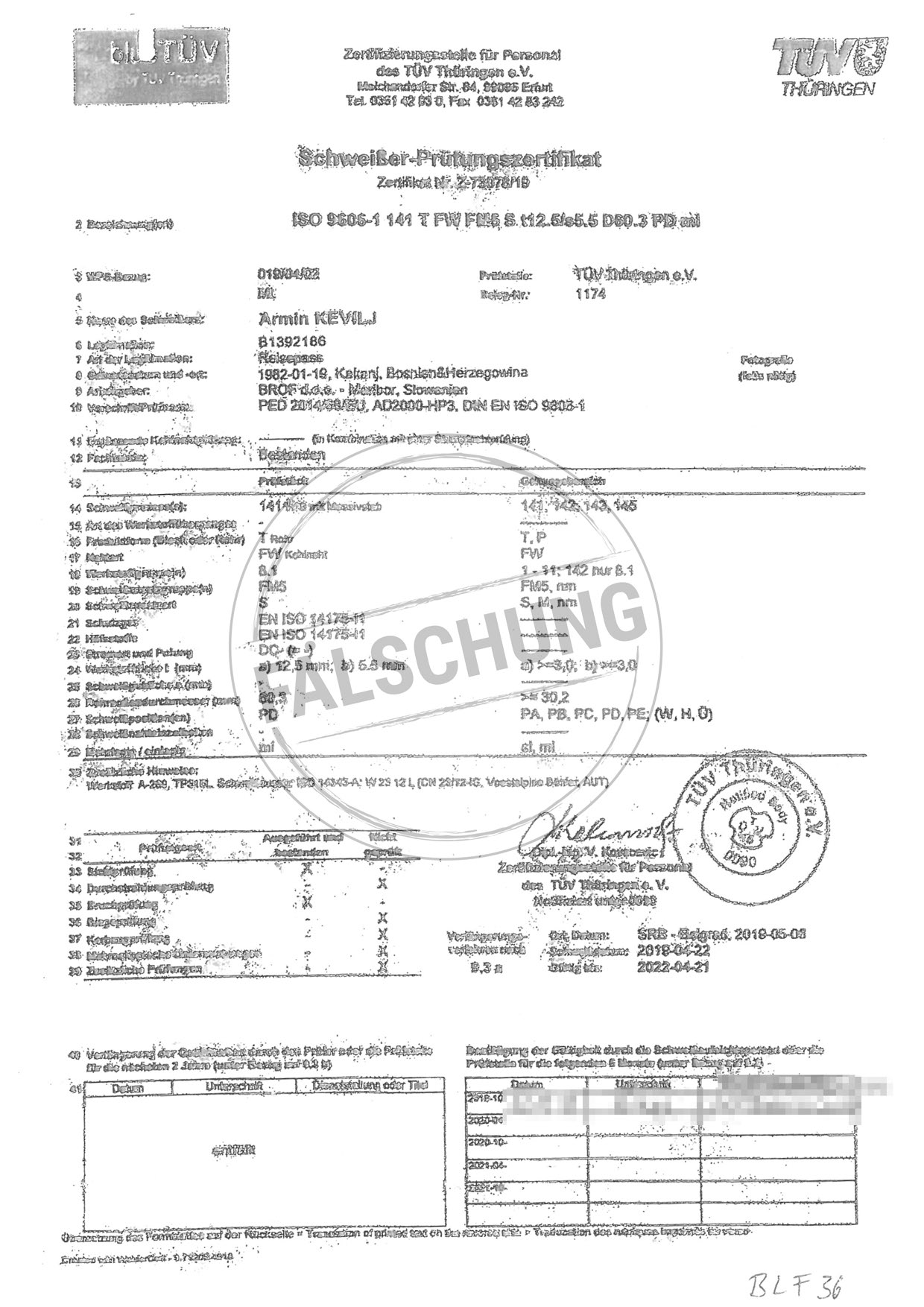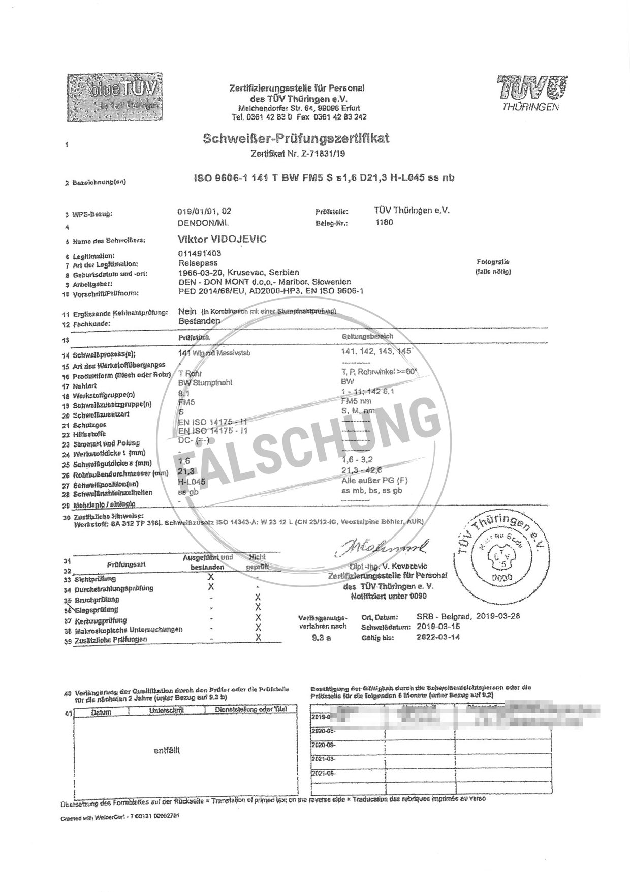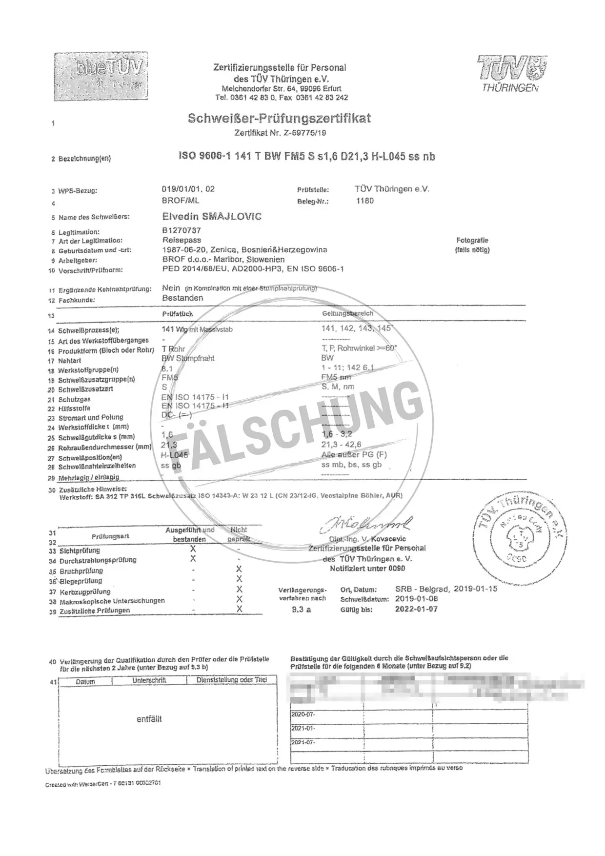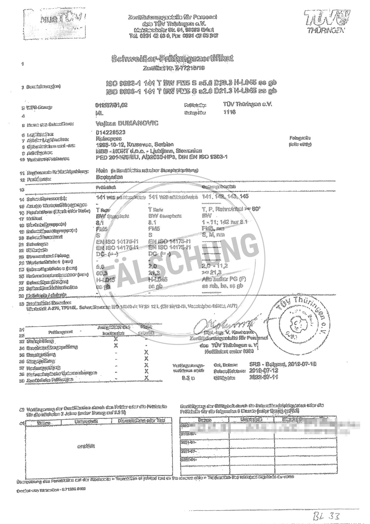 Следующие подделанные знаки контроля и сертификаты TÜV Thüringen, которые ни коим образом нами лично не распространялись, известны нам: