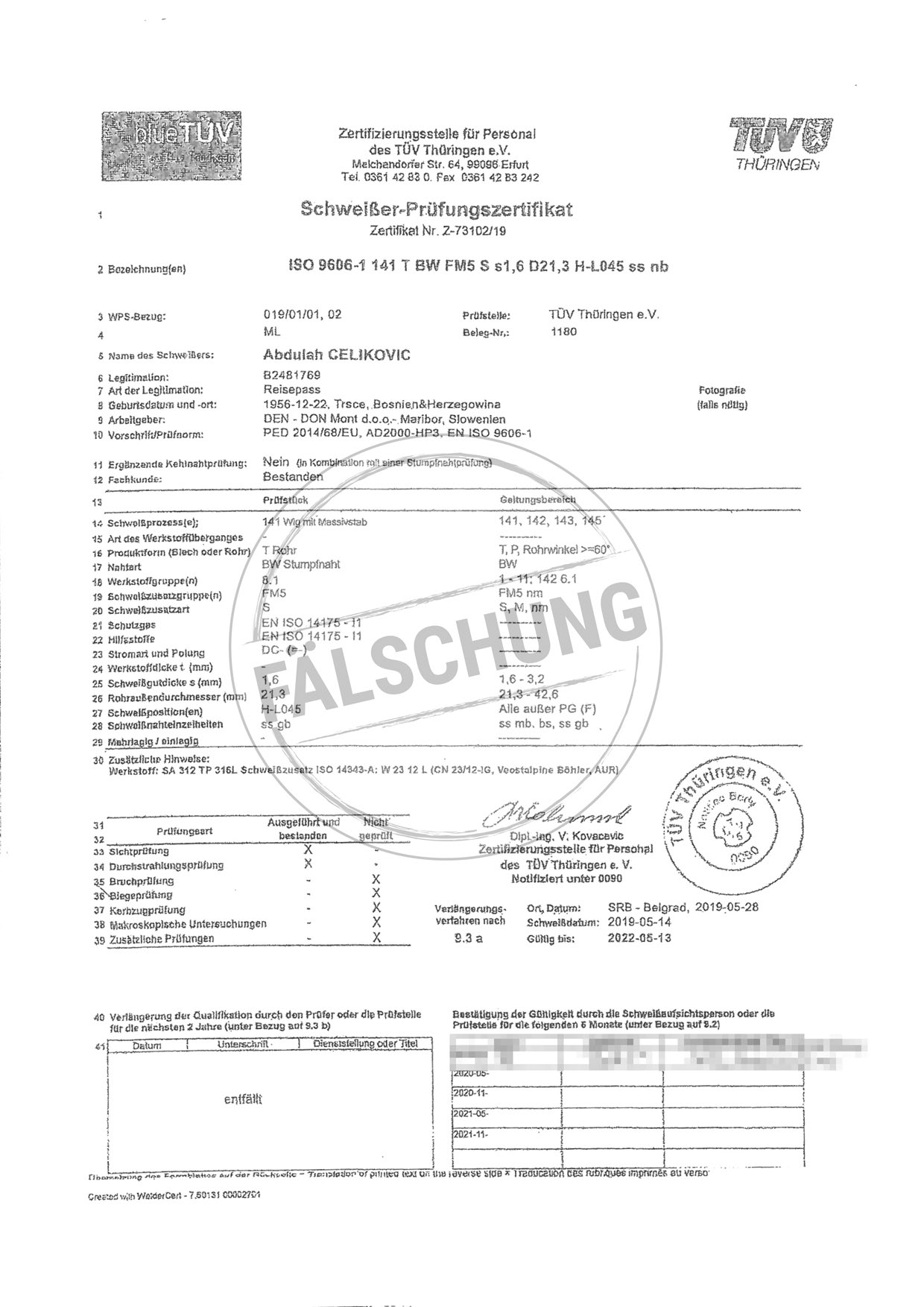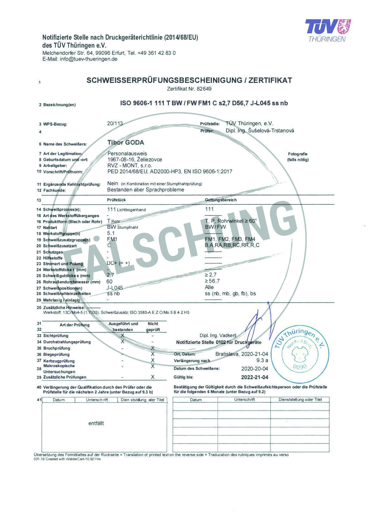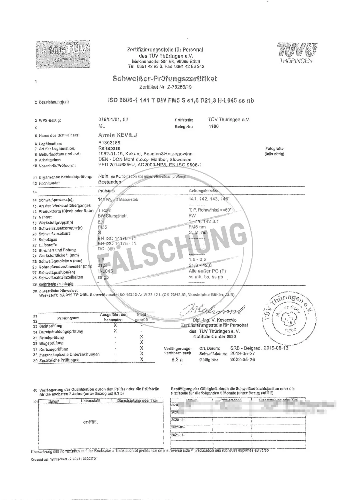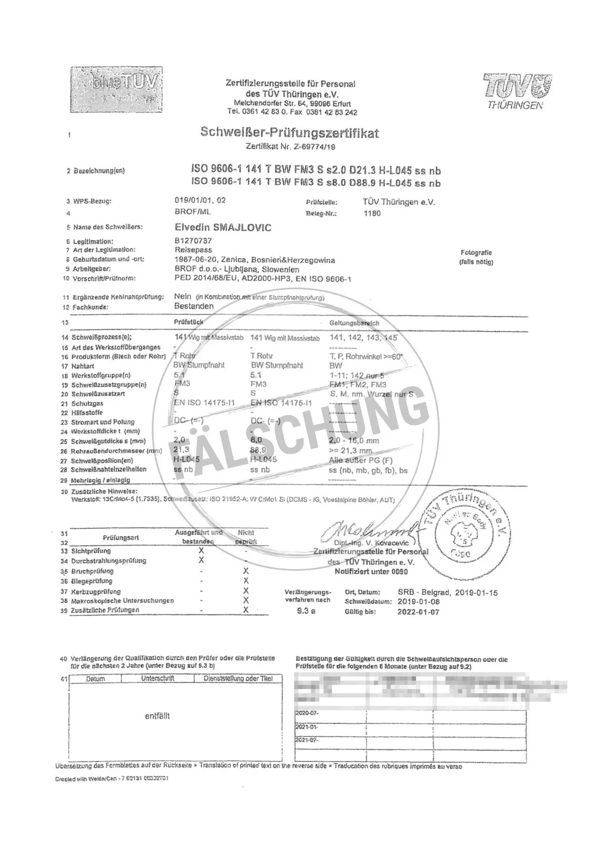 Следующие подделанные знаки контроля и сертификаты TÜV Thüringen, которые ни коим образом нами лично не распространялись, известны нам: