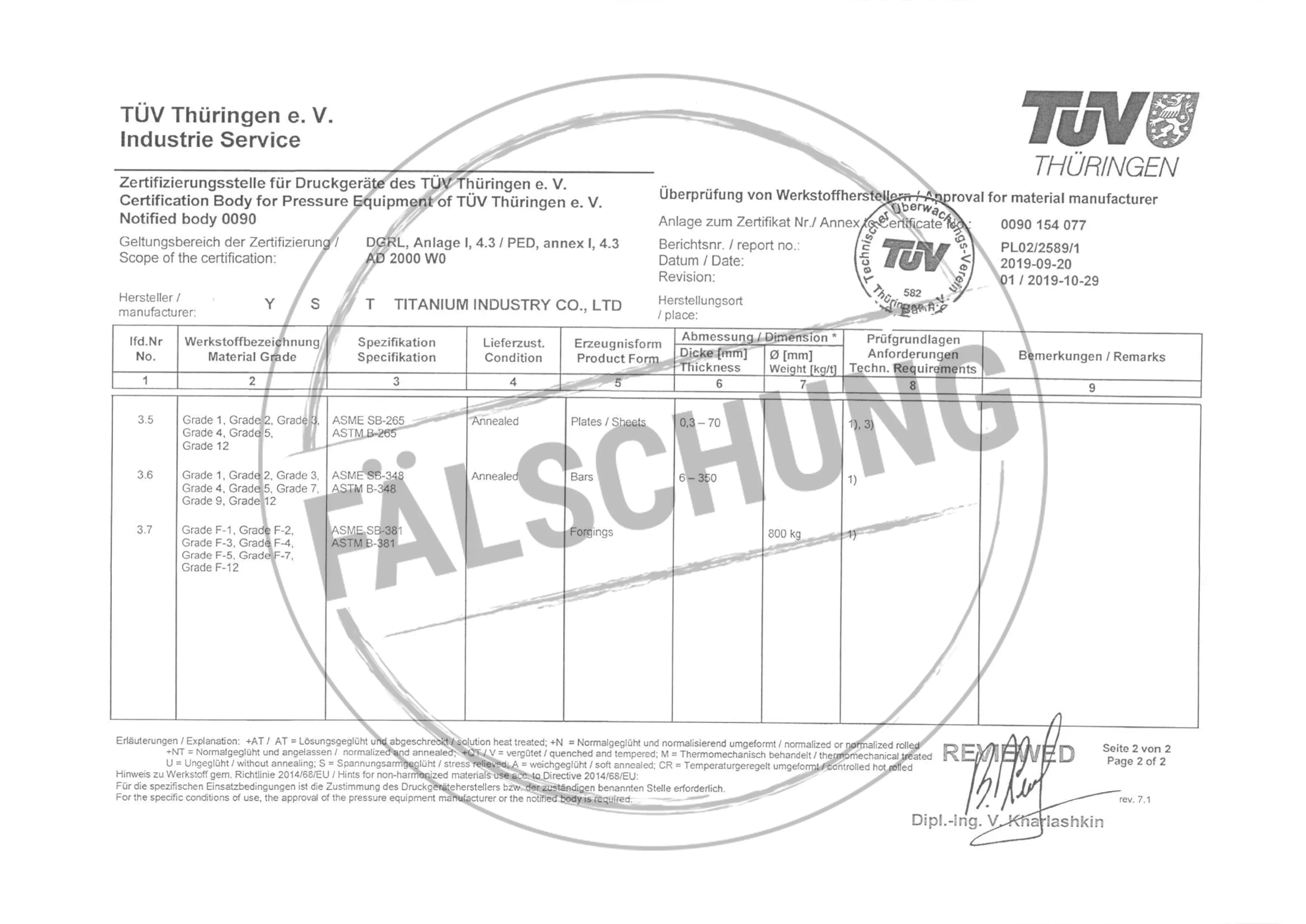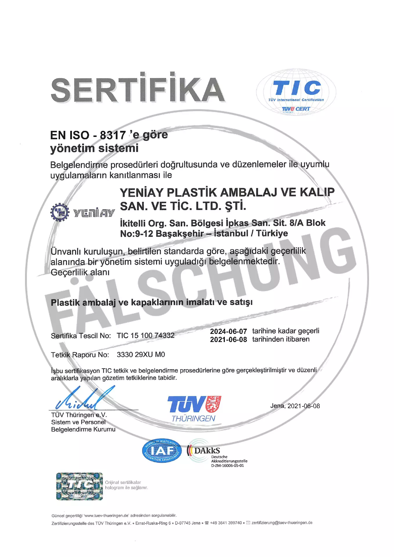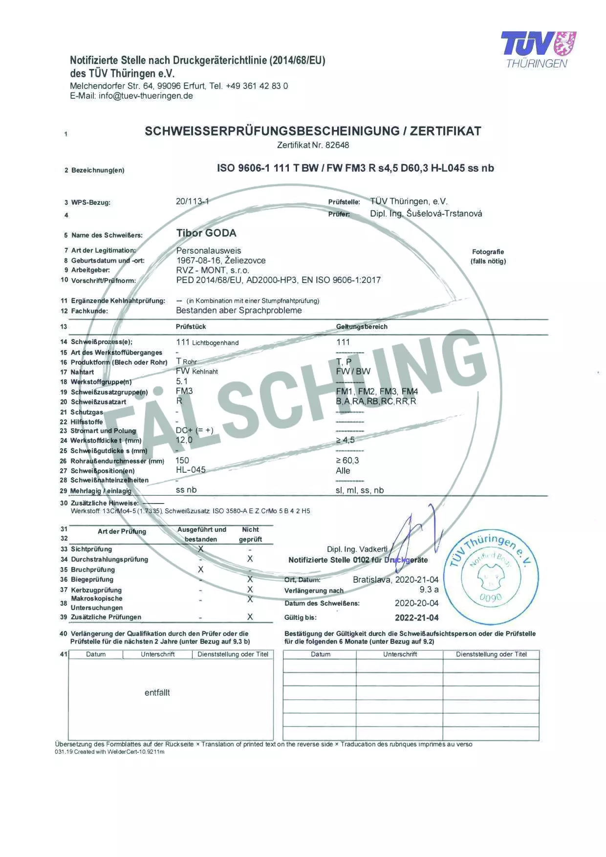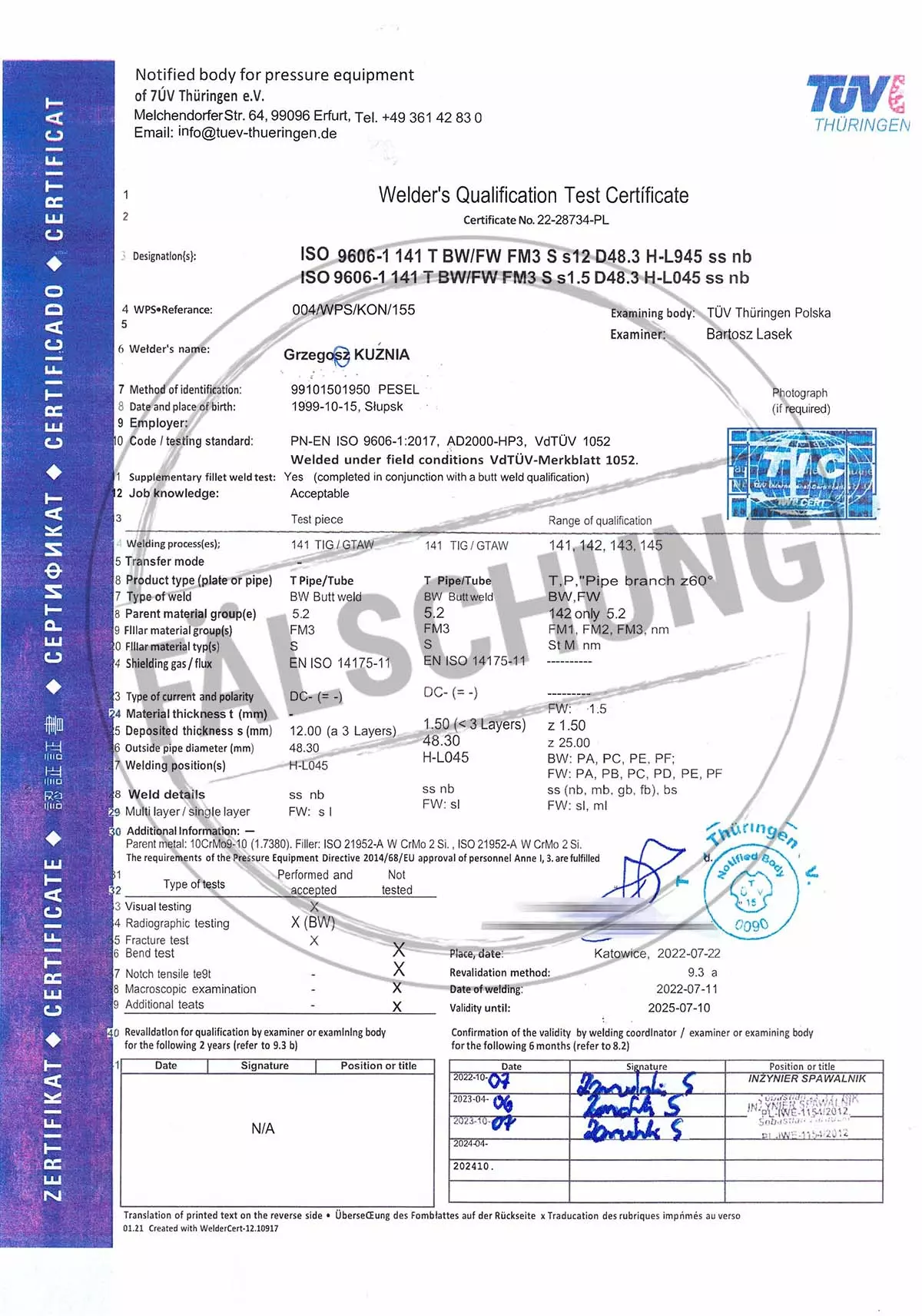 Следующие подделанные знаки контроля и сертификаты TÜV Thüringen, которые ни коим образом нами лично не распространялись, известны нам: