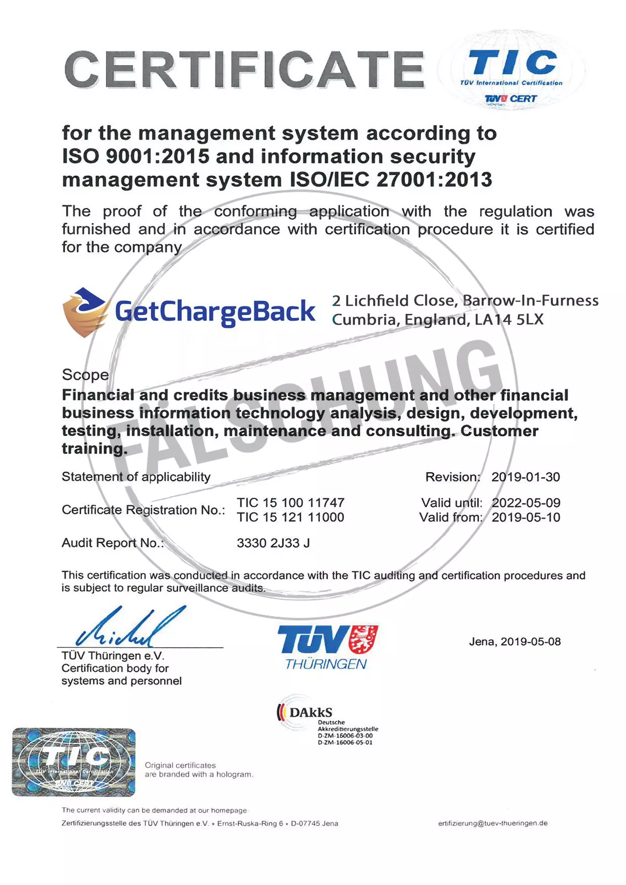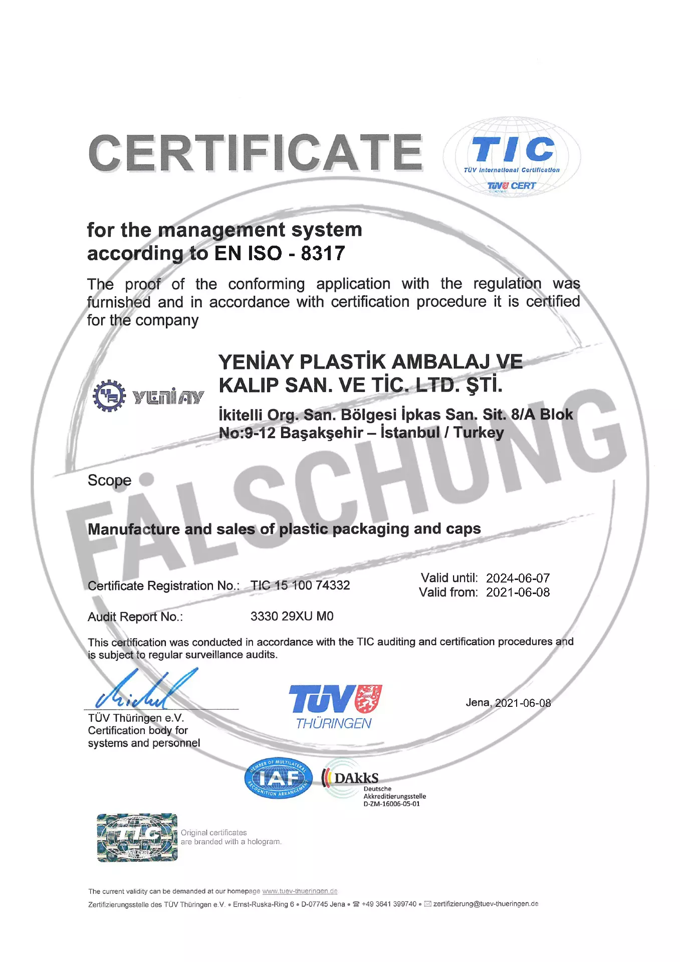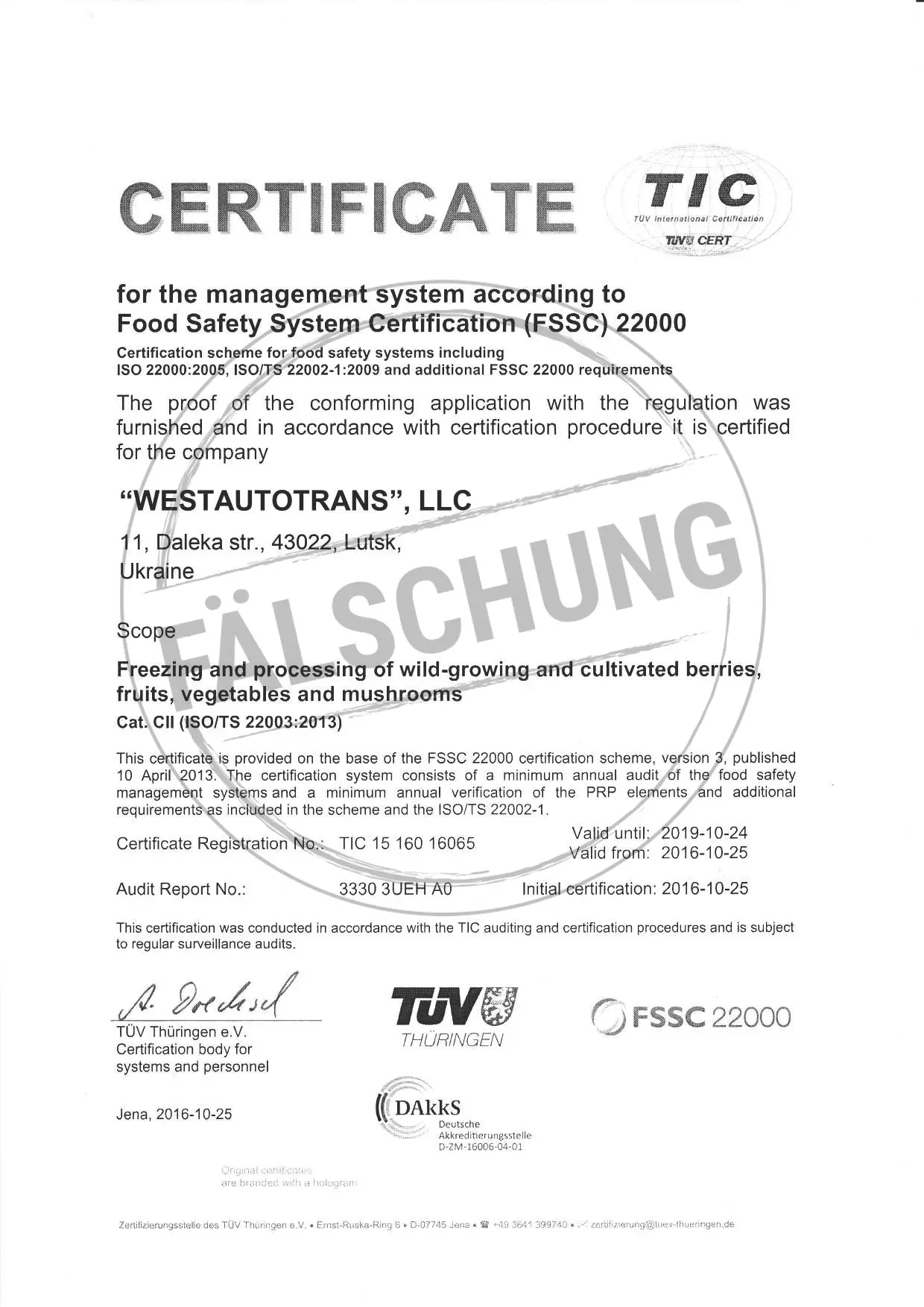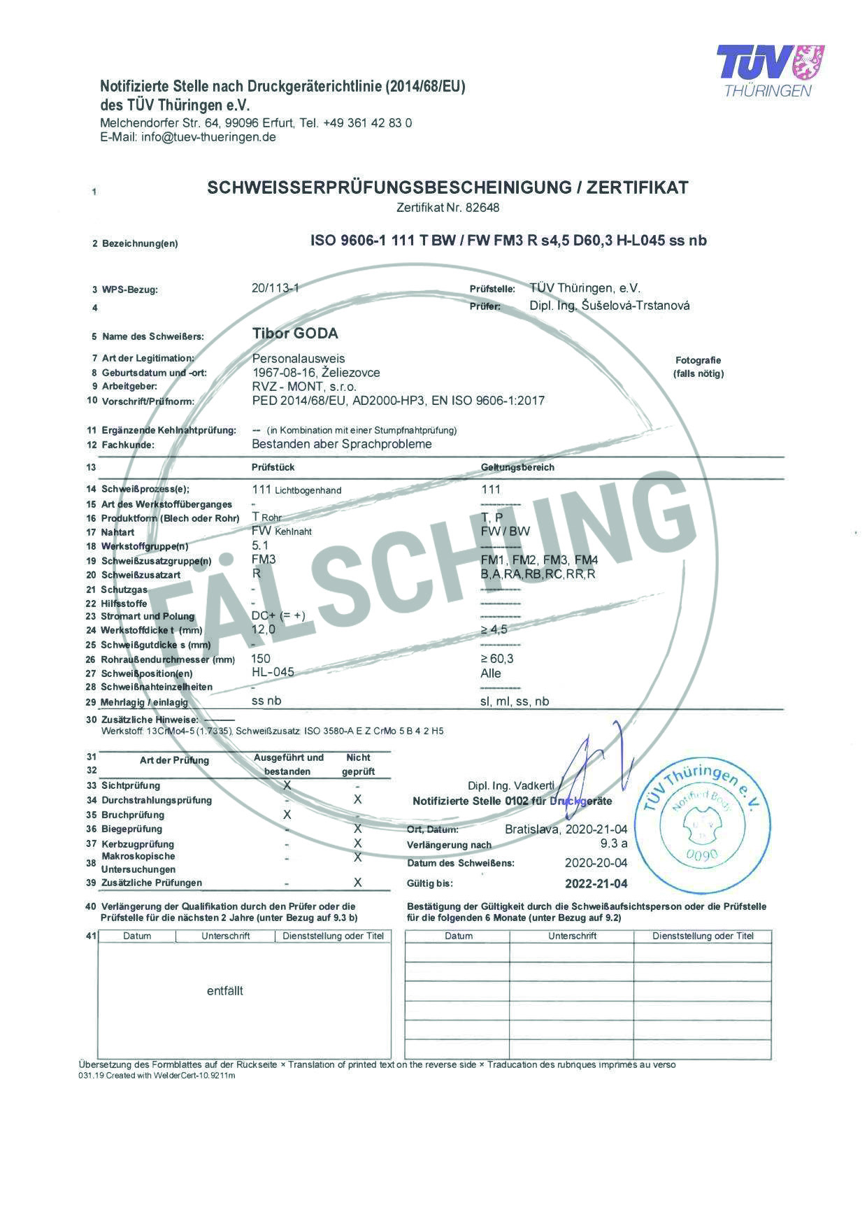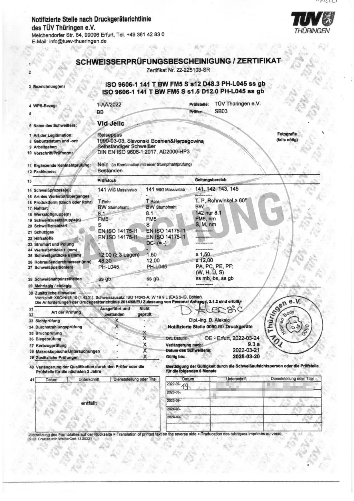 Следующие подделанные знаки контроля и сертификаты TÜV Thüringen, которые ни коим образом нами лично не распространялись, известны нам: