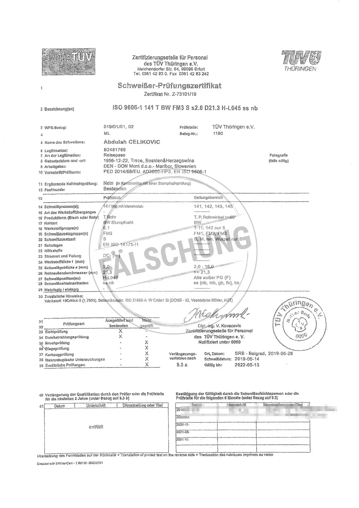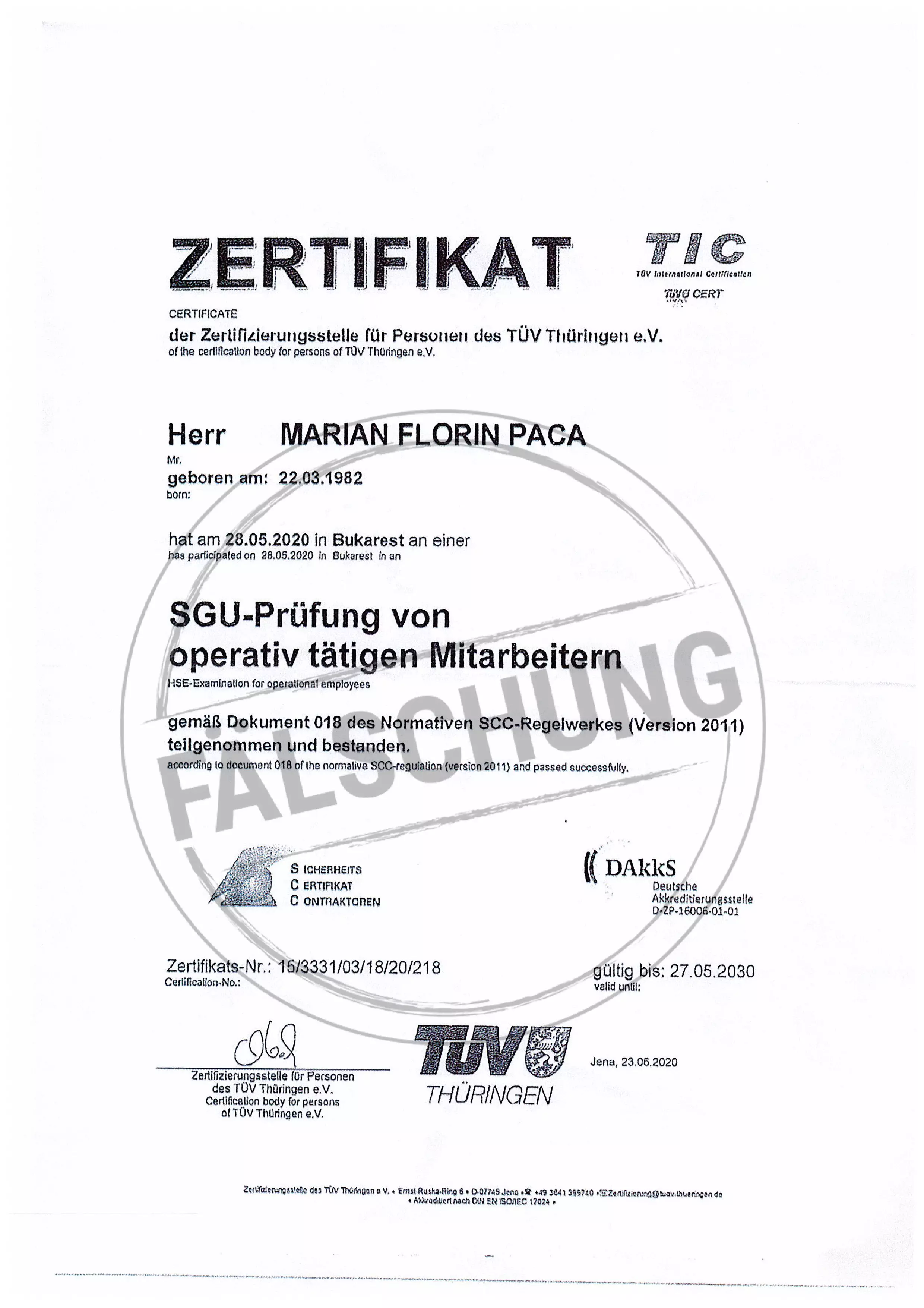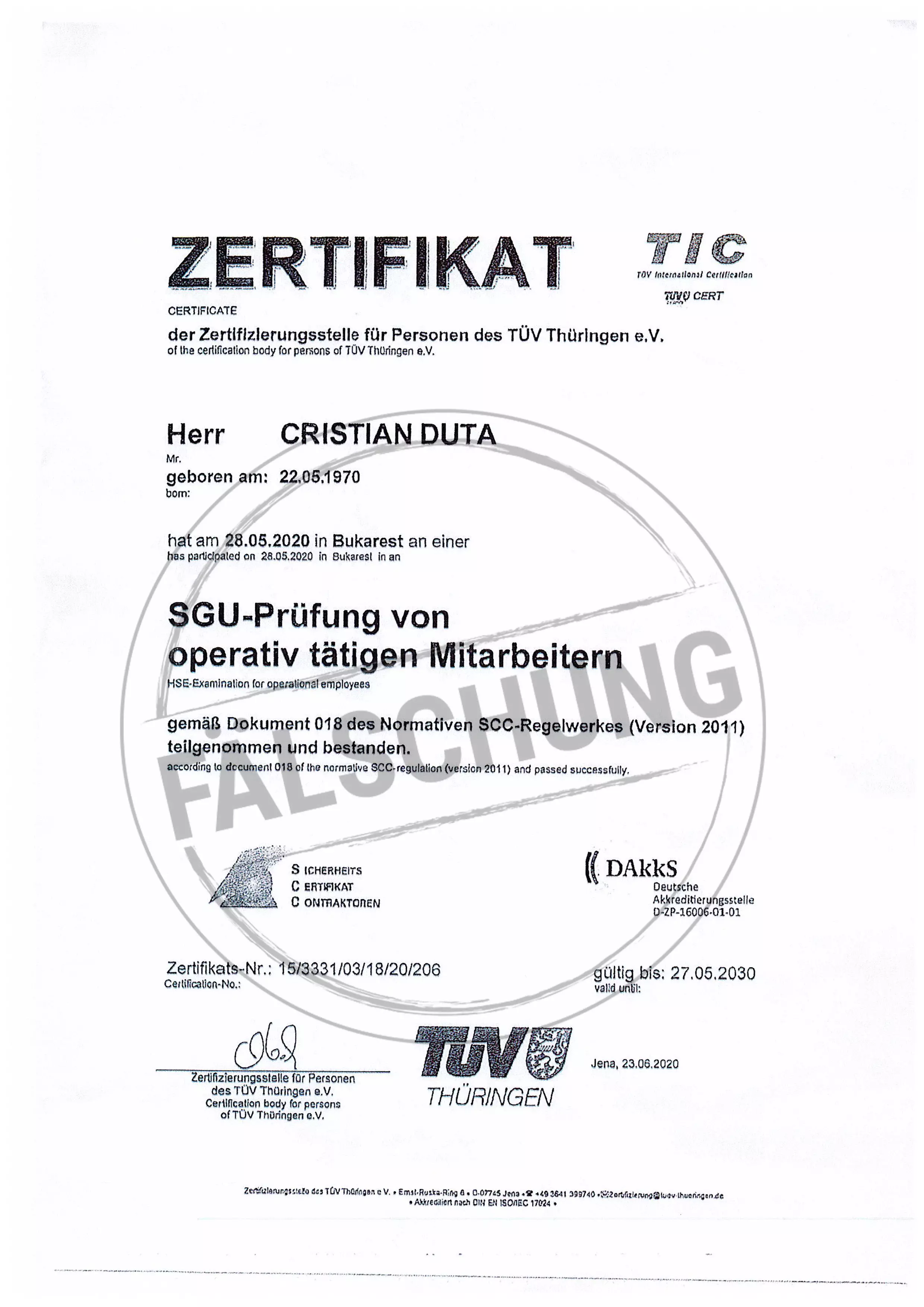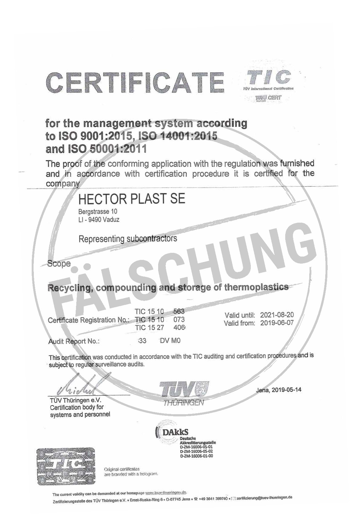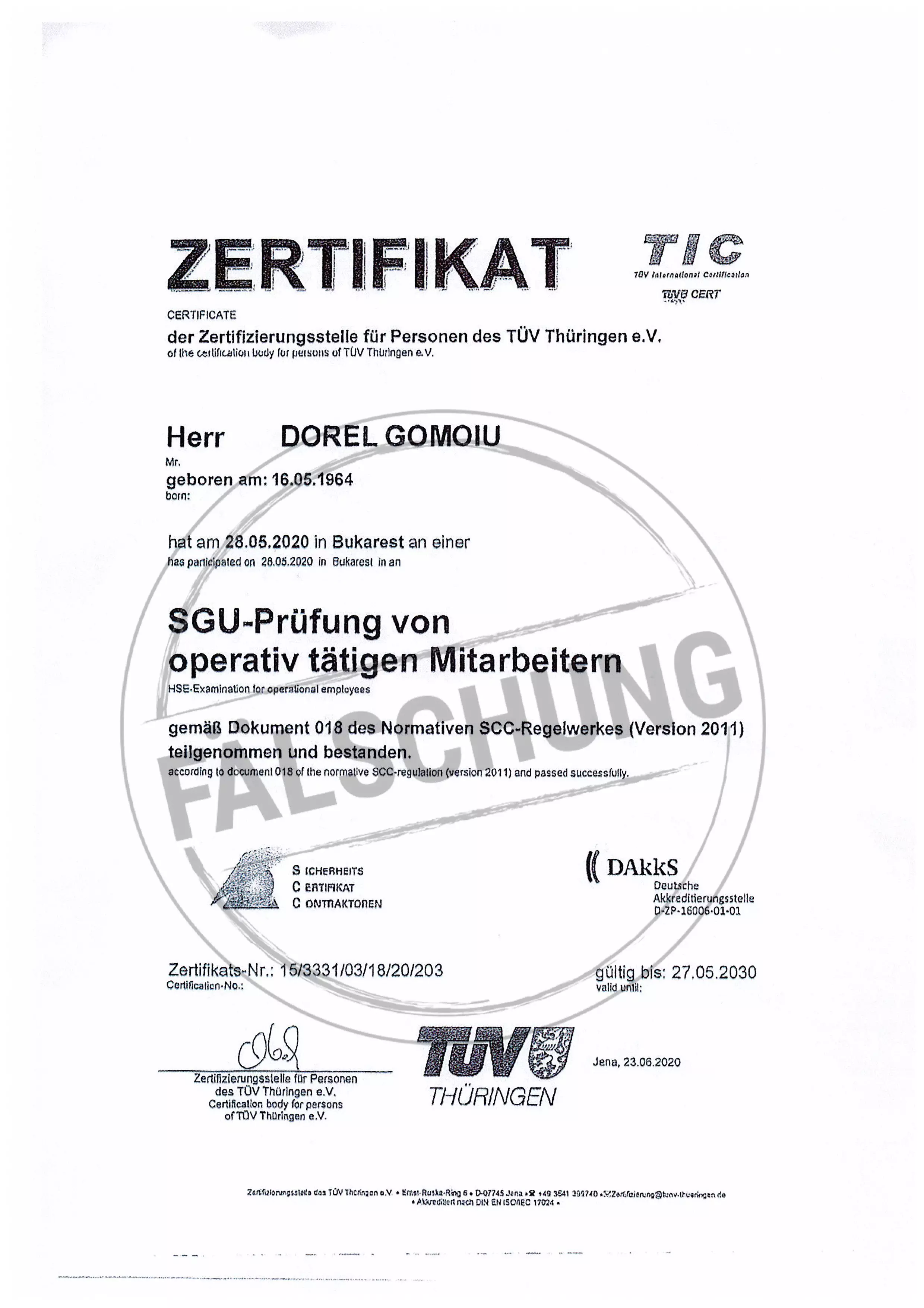The following fake test marks and certificates of TÜV Thüringen have become known to us but haven-t been issued by ourselves in any way:
