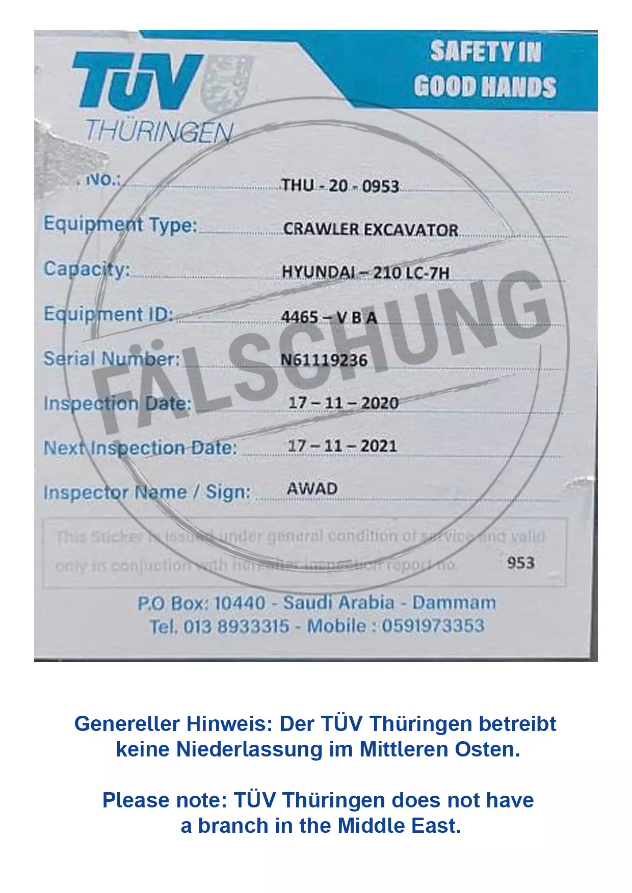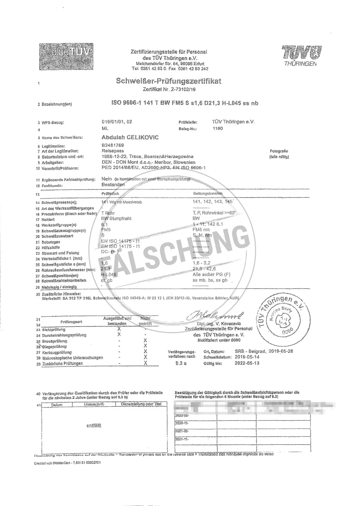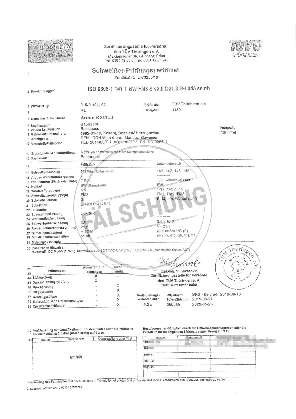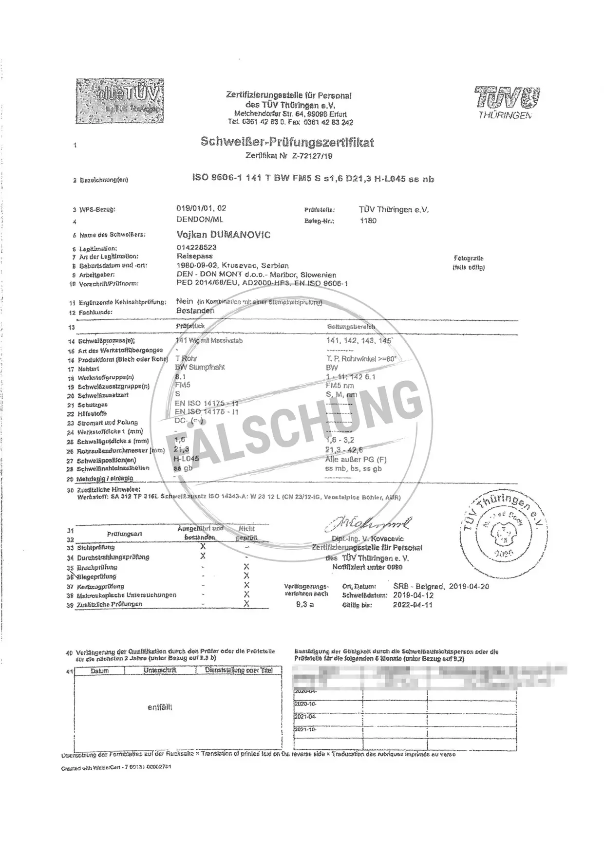 The following fake test marks and certificates of TÜV Thüringen have become known to us but haven-t been issued by ourselves in any way: