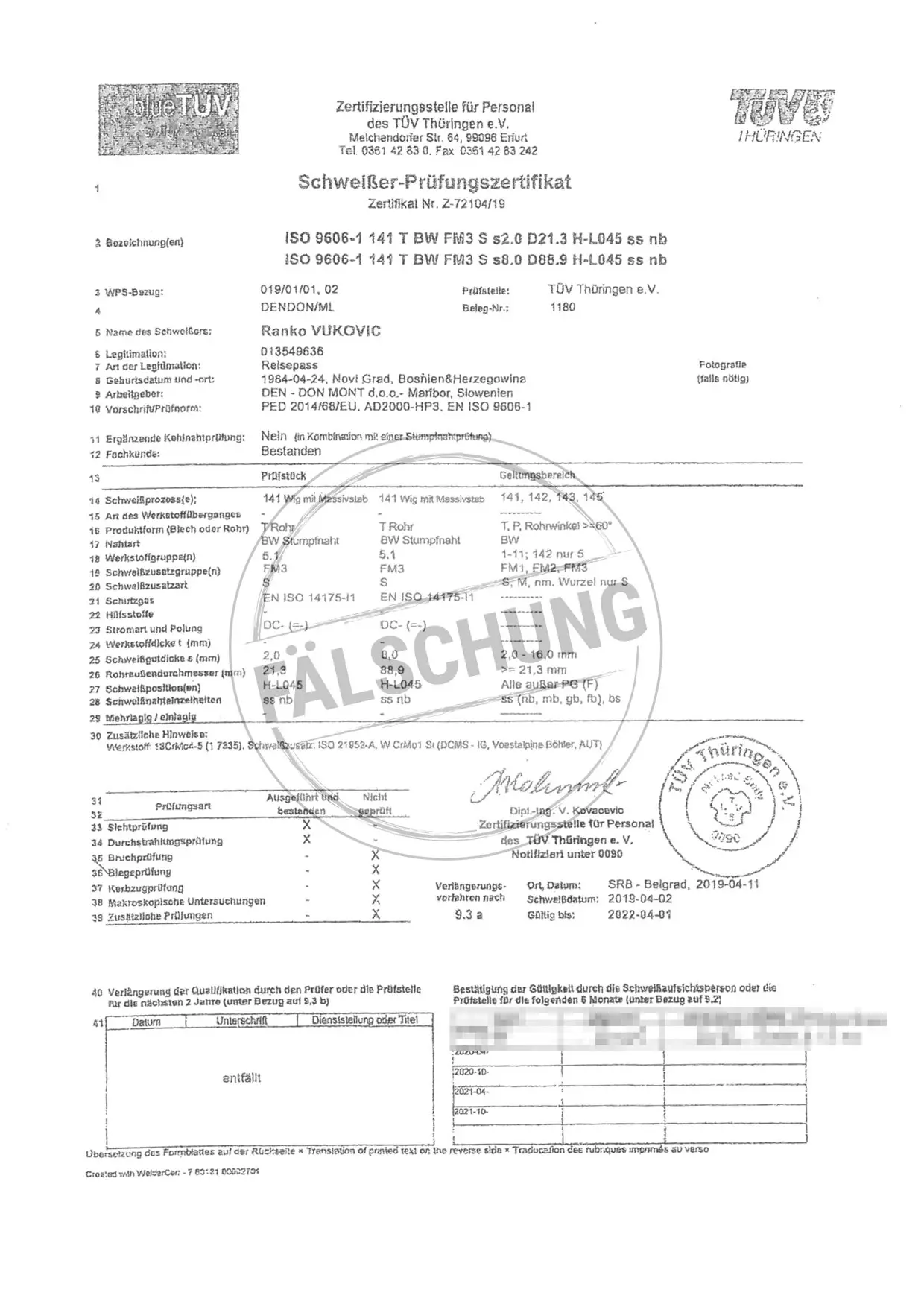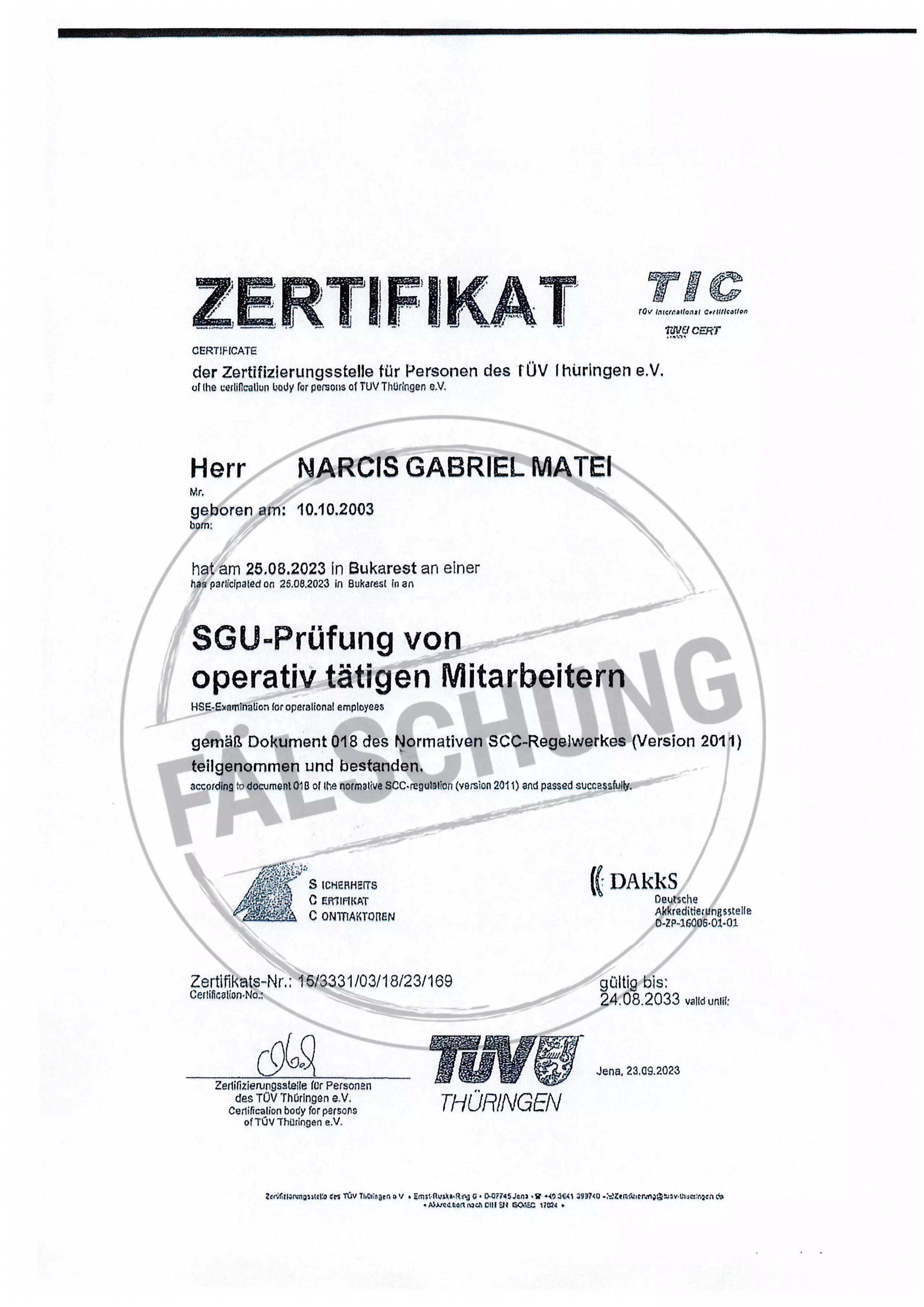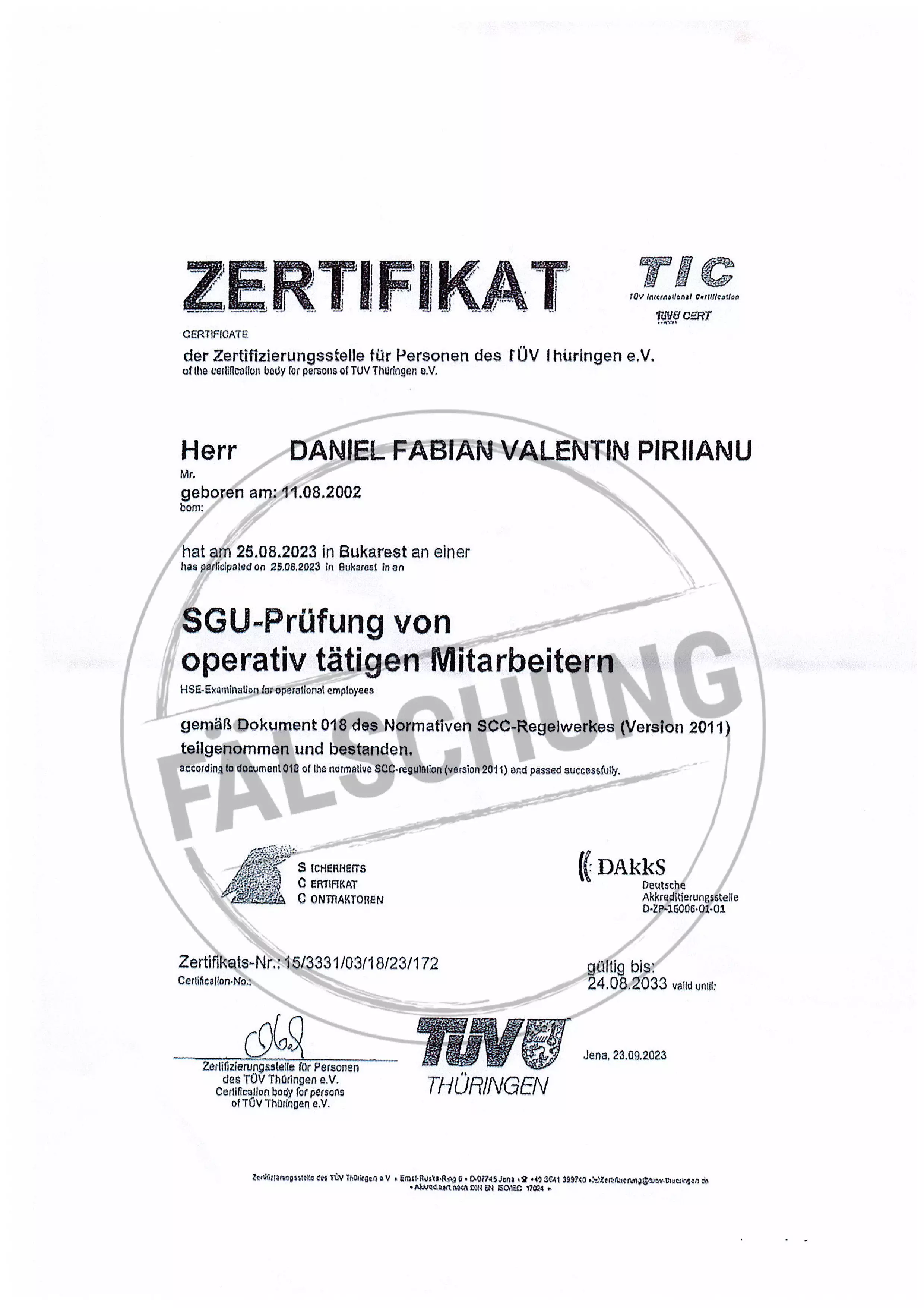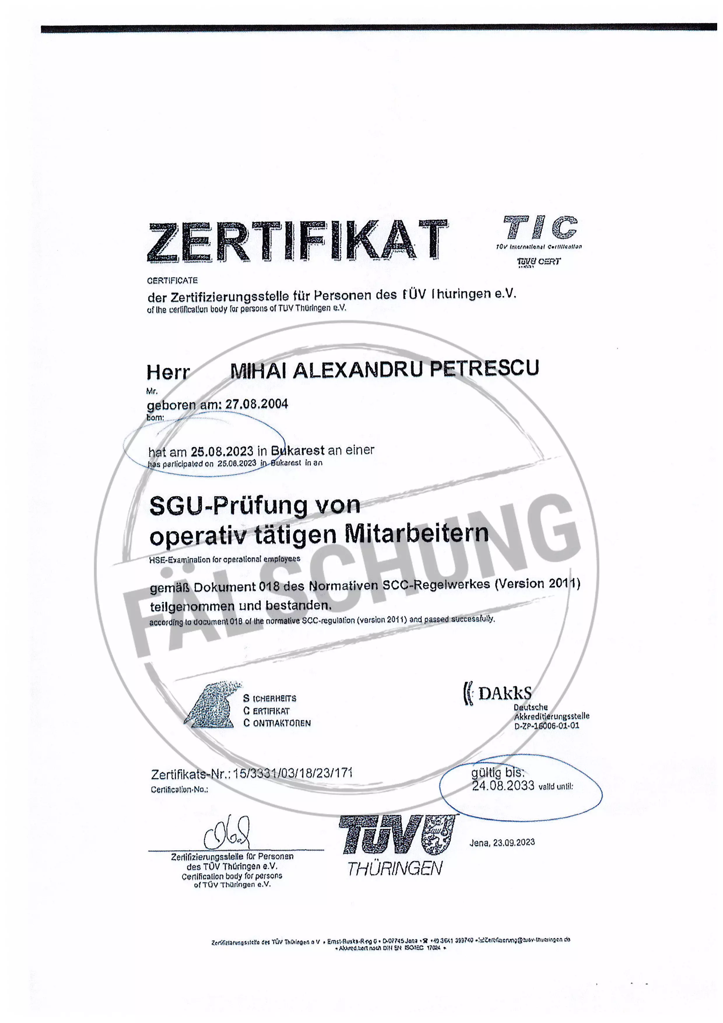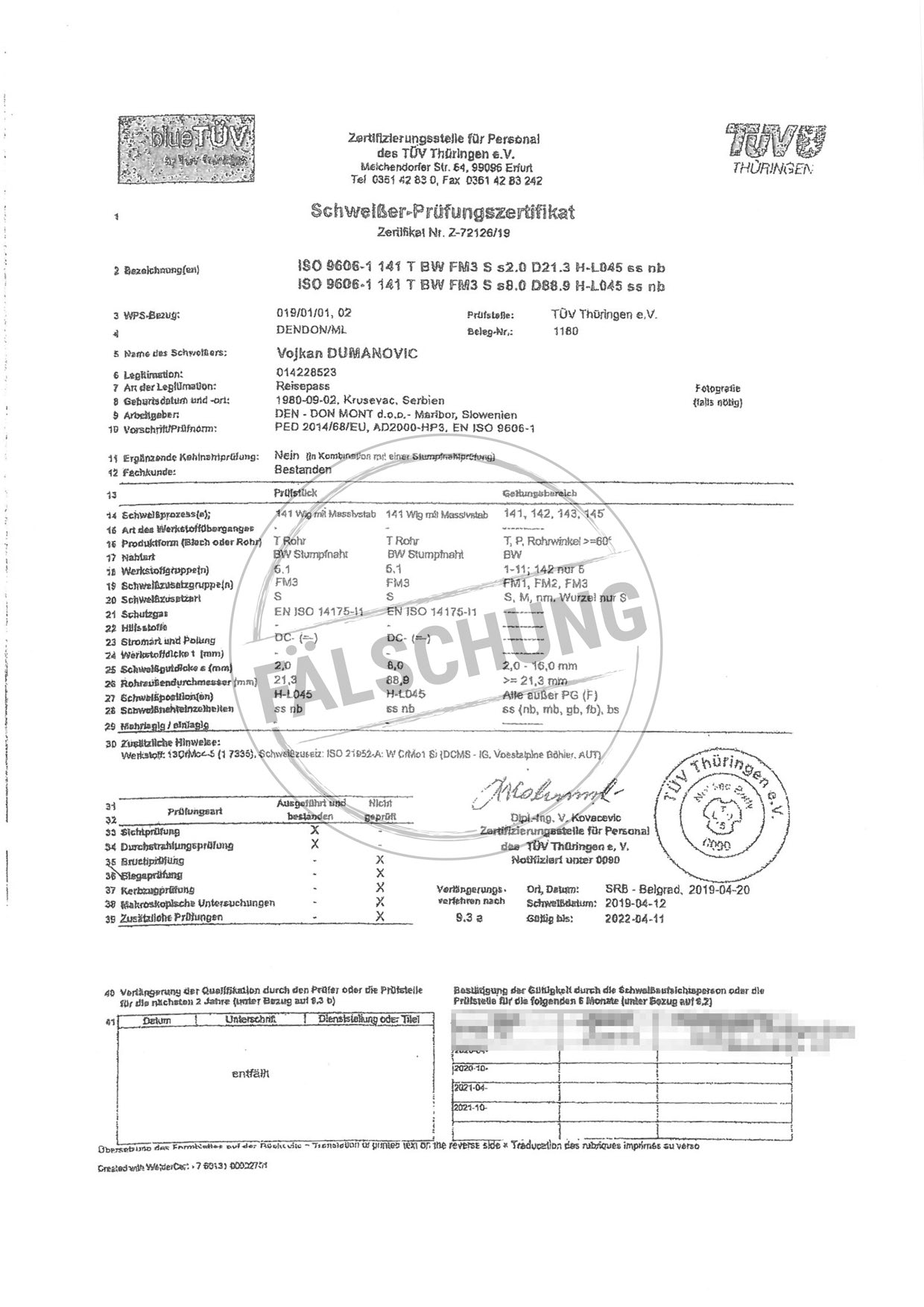 The following fake test marks and certificates of TÜV Thüringen have become known to us but haven-t been issued by ourselves in any way: