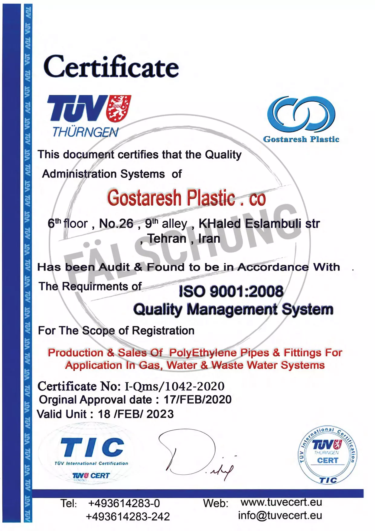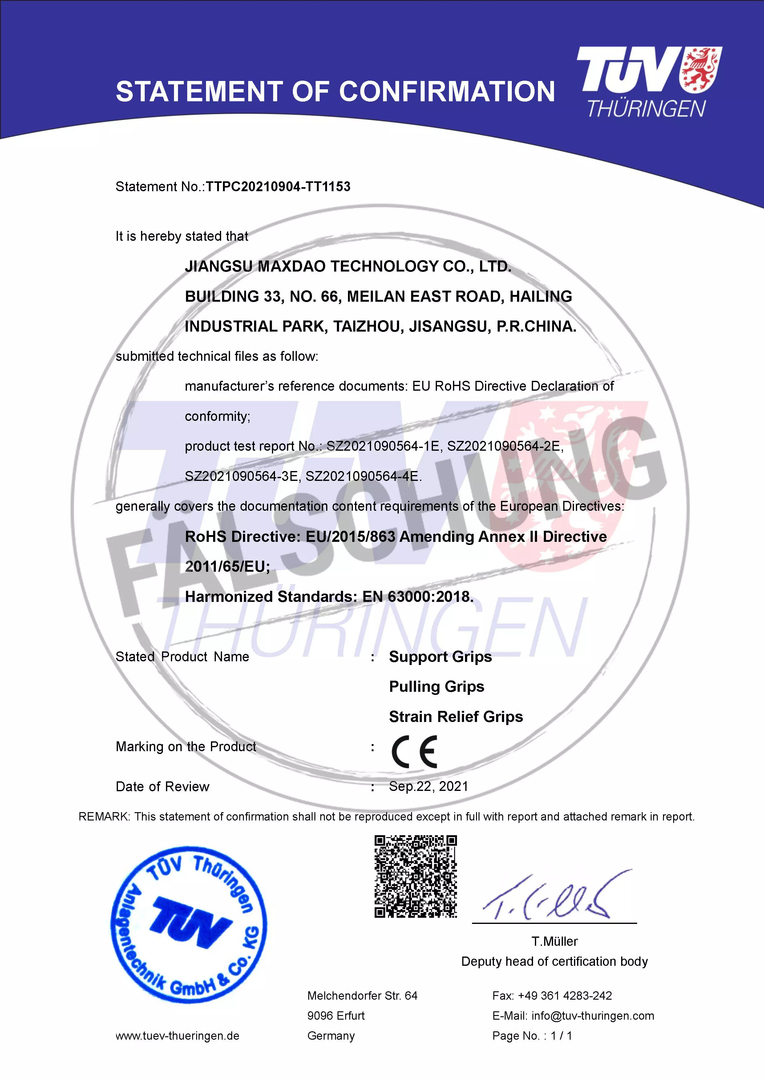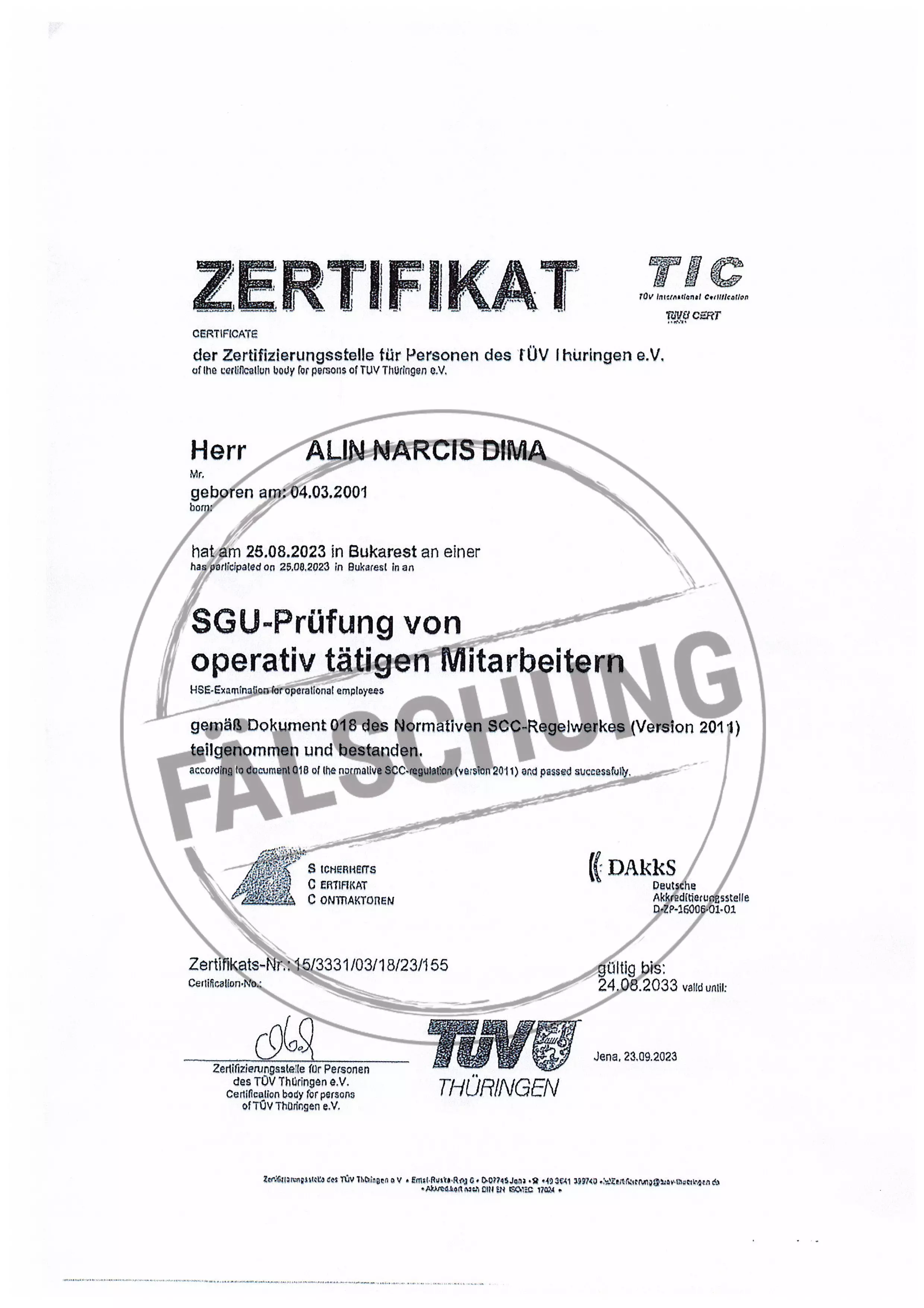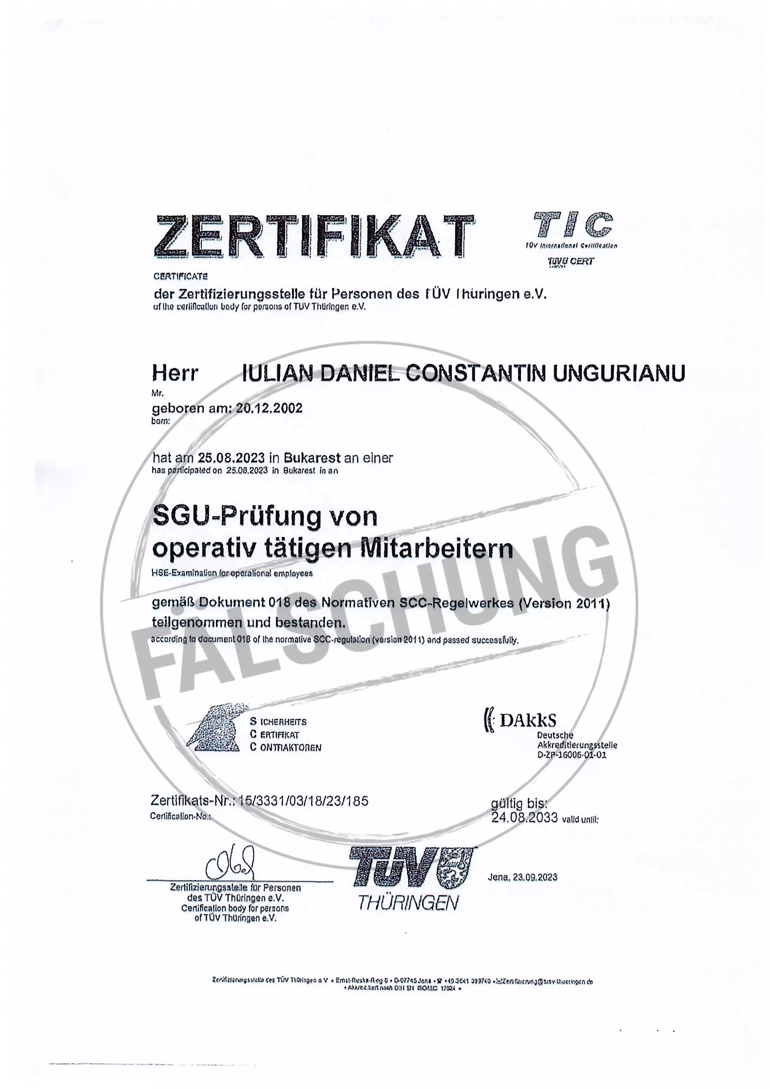 The following fake test marks and certificates of TÜV Thüringen have become known to us but haven-t been issued by ourselves in any way: