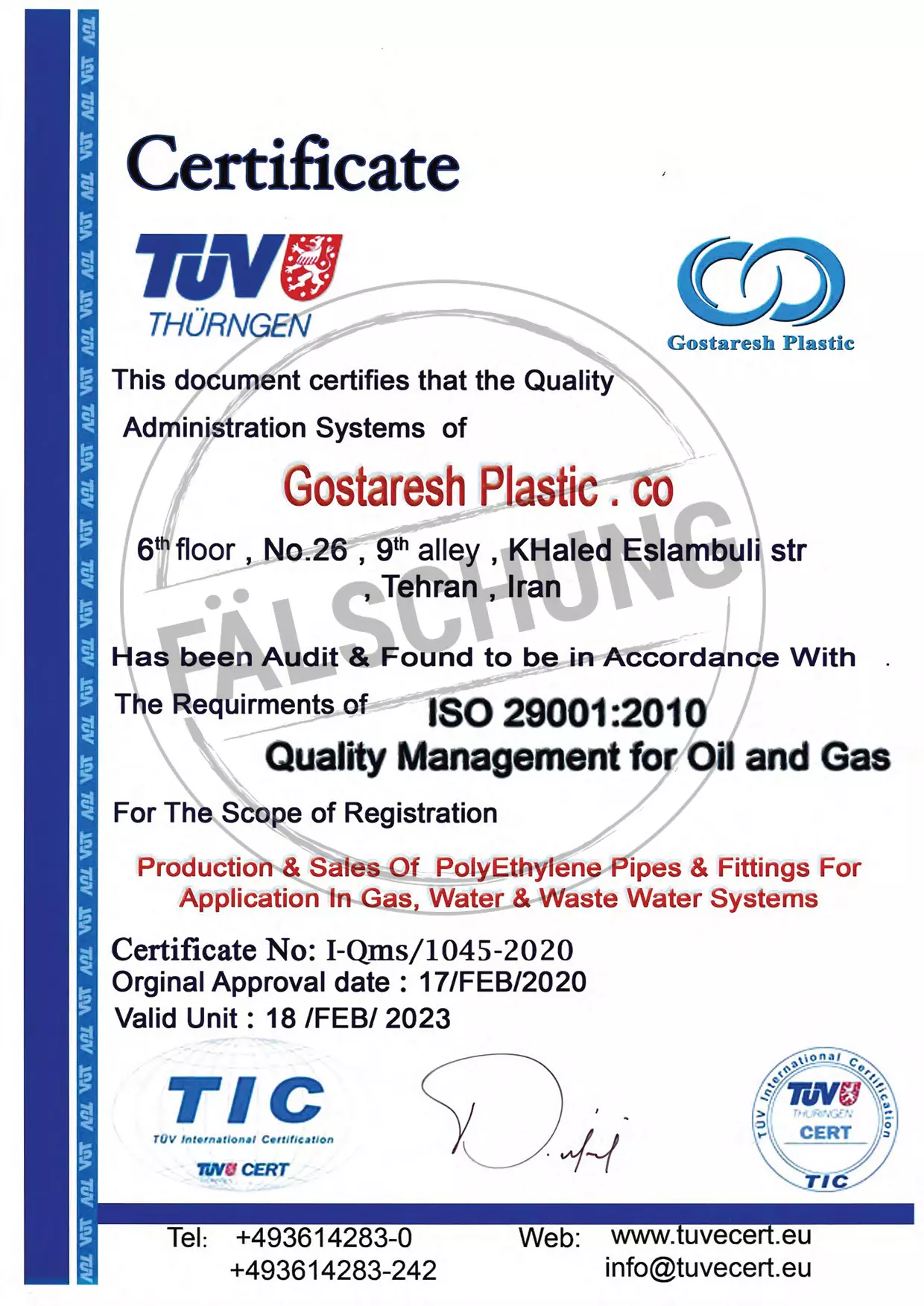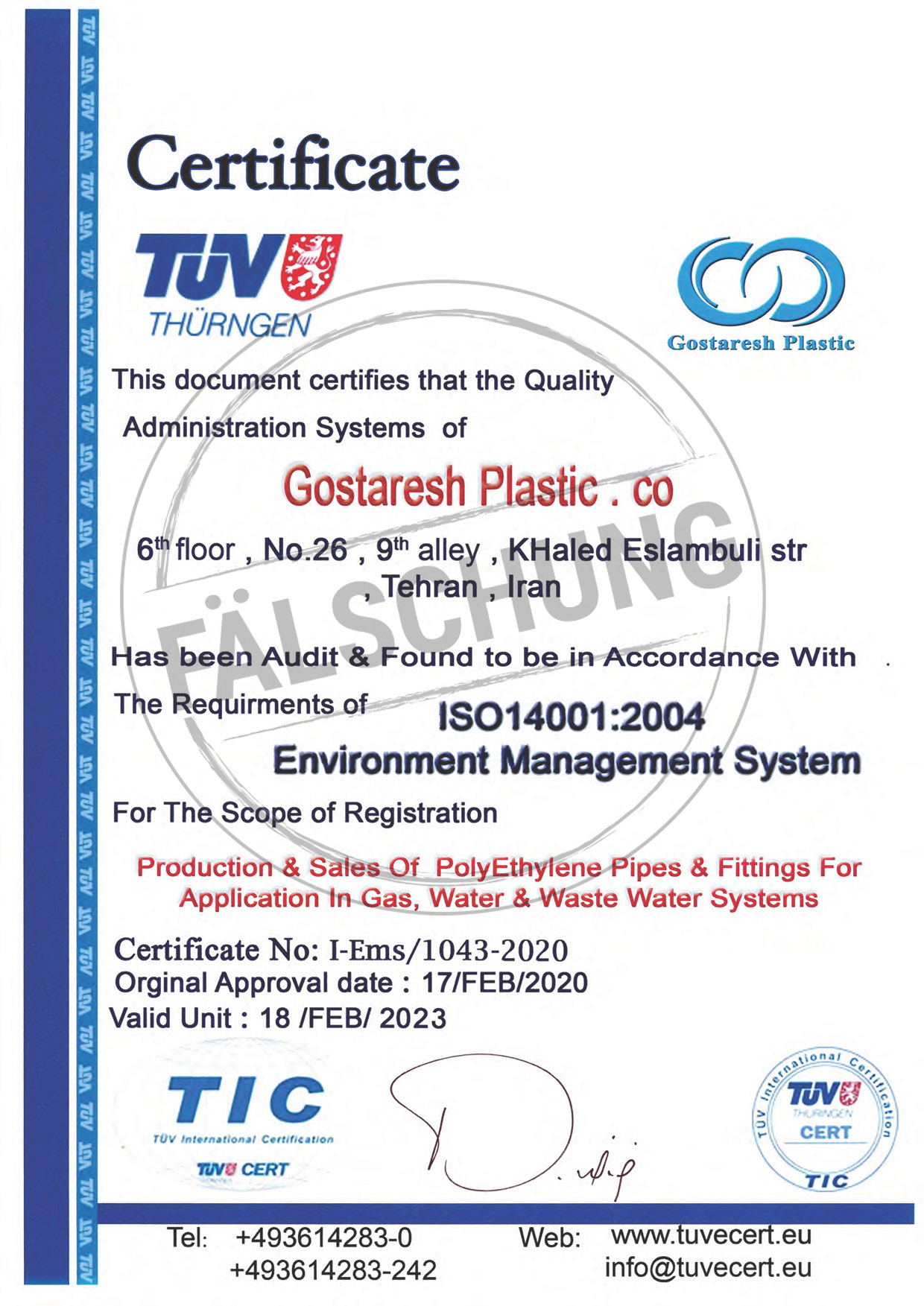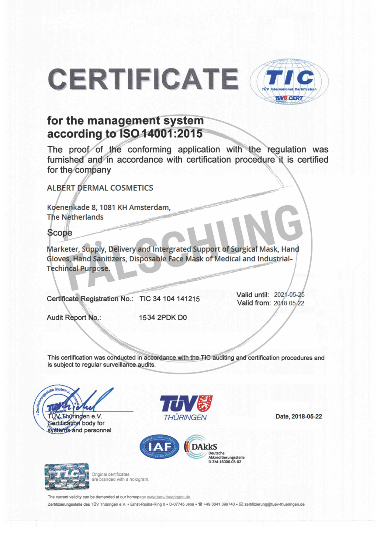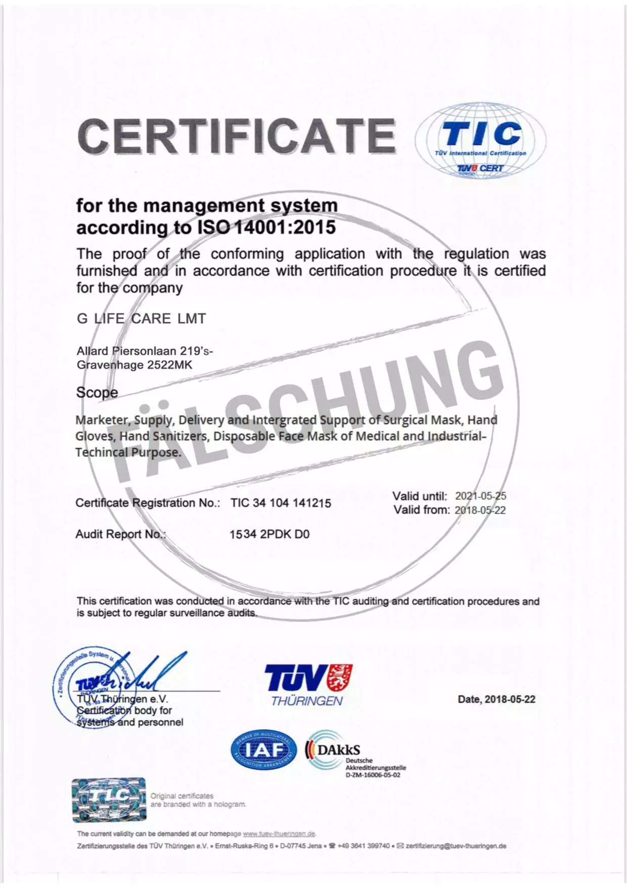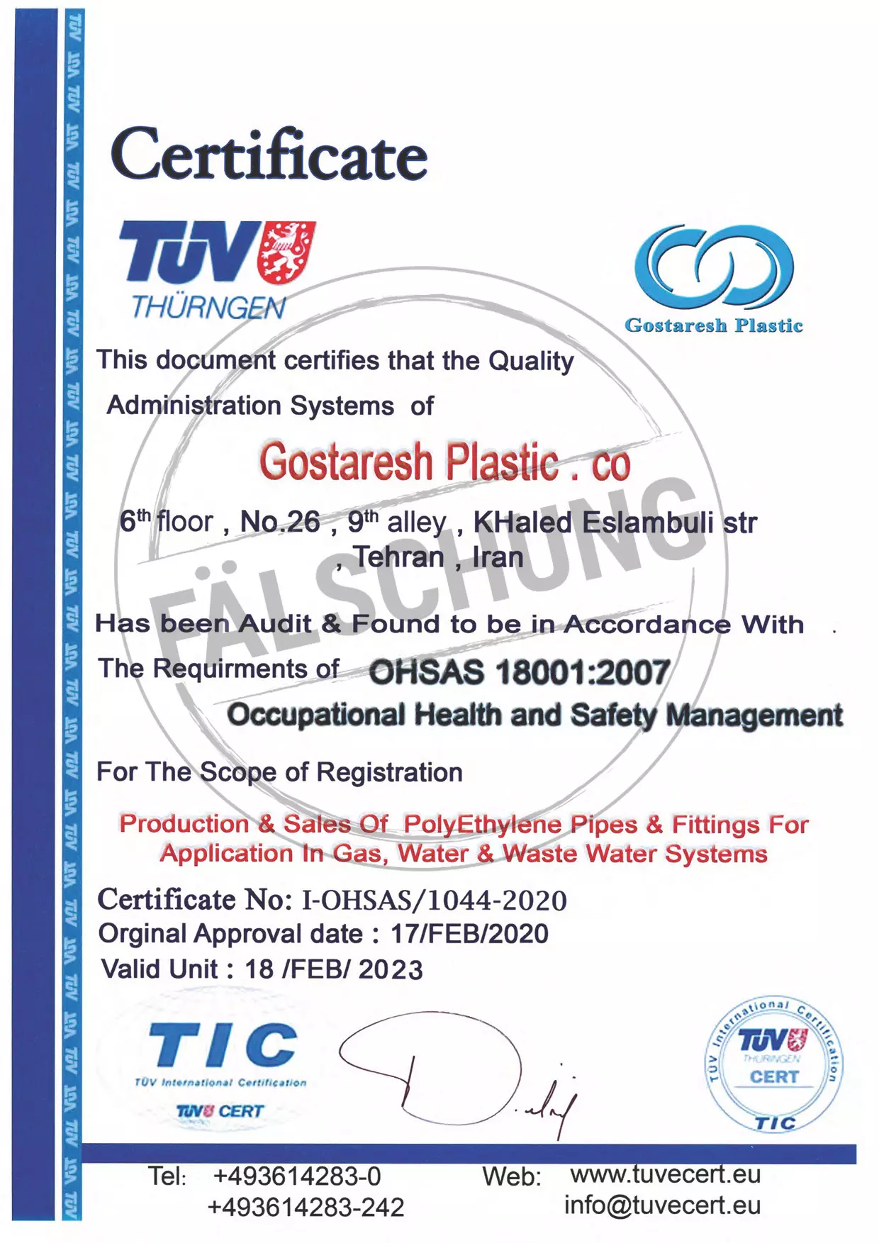 The following fake test marks and certificates of TÜV Thüringen have become known to us but haven-t been issued by ourselves in any way: