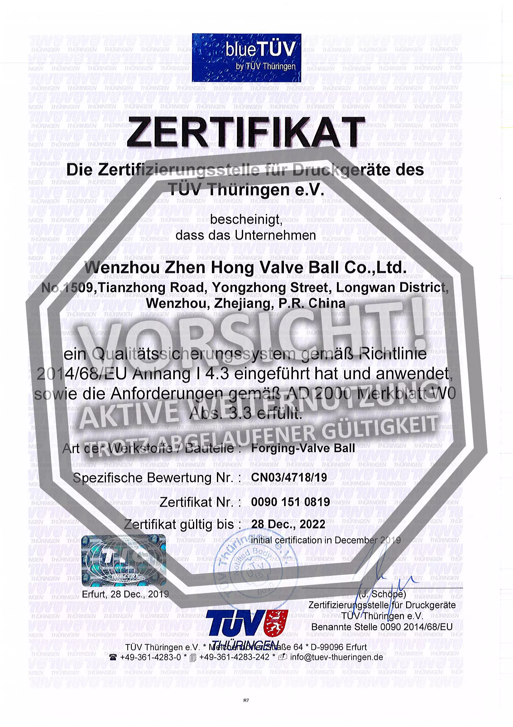 Mitunter werden Zertifikate des TÜV Thüringen durch ehemalige Kunden auch dann noch aktiv genutzt, wenn ihre Gültigkeit unstrittig abgelaufen ist. Ob ein Zertifikat noch gültig ist, können Sie mit Hilfe der Zertifikatsnummer in unserer Gültigkeits-Abfrage selbst überprüfen. Folgende missbräuchliche Nutzungen abgelaufener Zertifikate des TÜV Thüringen sind uns bekannt geworden: